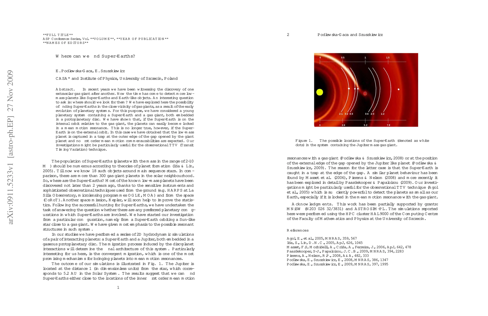 This paper explores the potential locations for detecting Super-Earths in planetary systems, focusing on their proximity to gas giants. It finds that Super-Earths on internal orbits relative to gas giants may become locked in mean motion resonances, while those on external orbits are likely trapped in the gap created by the giant planet, aiding in the application of the Transit Timing Variation technique.