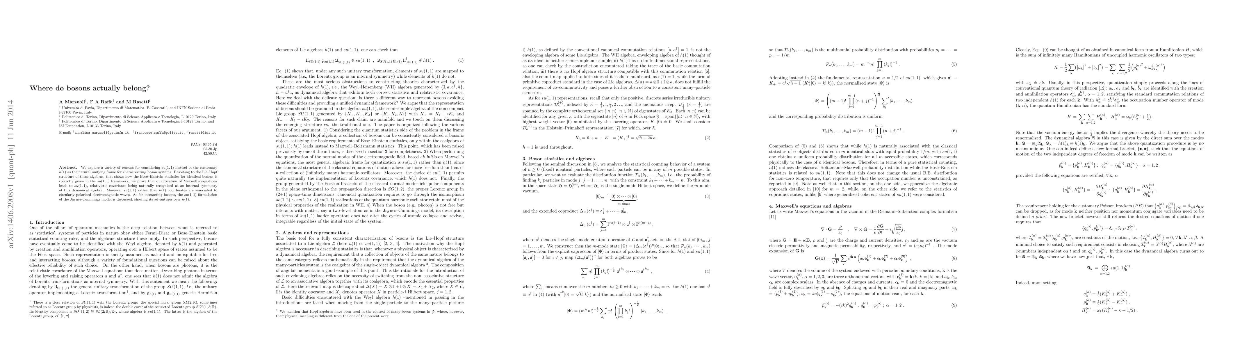 We explore a variety of reasons for considering su(1,1) instead of the customary h(1) as the natural unifying frame for characterizing boson systems. Resorting to the Lie-Hopf structure of these algebras, that shows how the Bose-Einstein statistics for identical bosons is correctly given in the su(1,1) framework, we prove that quantization of Maxwell's equations leads to su(1,1), relativistic covariance being naturally recognized as an internal symmetry of this dynamical algebra. Moreover su(1,1) rather than h(1) coordinates are associated to circularly polarized electromagnetic waves. As for interacting bosons, the su(1,1) formulation of the Jaynes-Cummings model is discussed, showing its advantages over h(1).