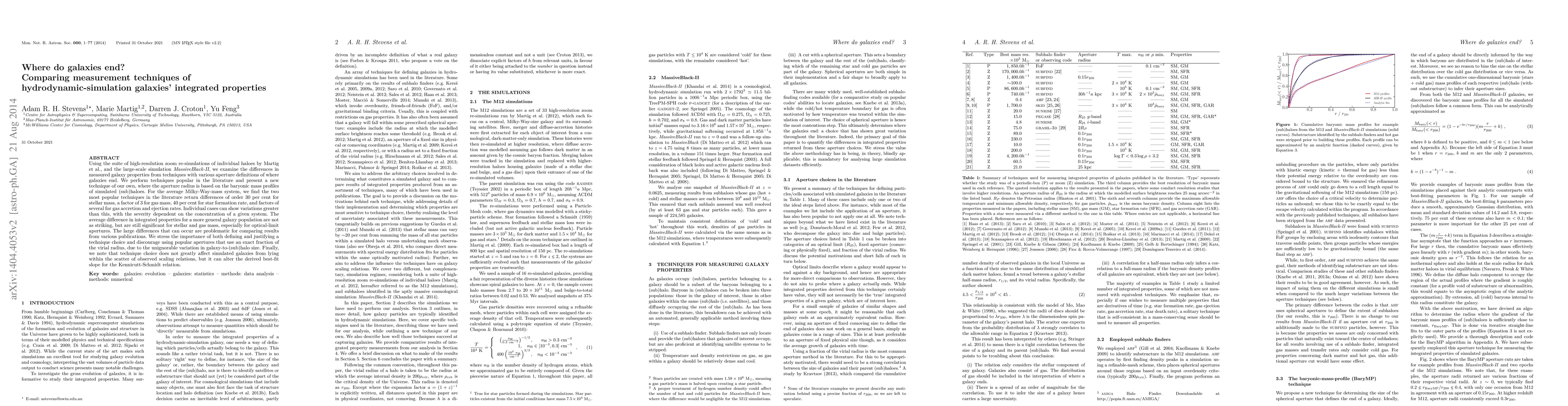 This research compares galaxy property measurement techniques in simulations, finding significant discrepancies of up to 30% for stellar mass, 3 for gas mass, and several for rates, depending on aperture definitions. It emphasizes the importance of defining and justifying technique choice due to considerable variation in galaxy-to-(sub)halo size, and notes that while technique choice doesn't drastically affect simulated galaxies' fit within observed scaling relations, it can alter the derived slopes of relations like the Kennicutt-Schmidt.