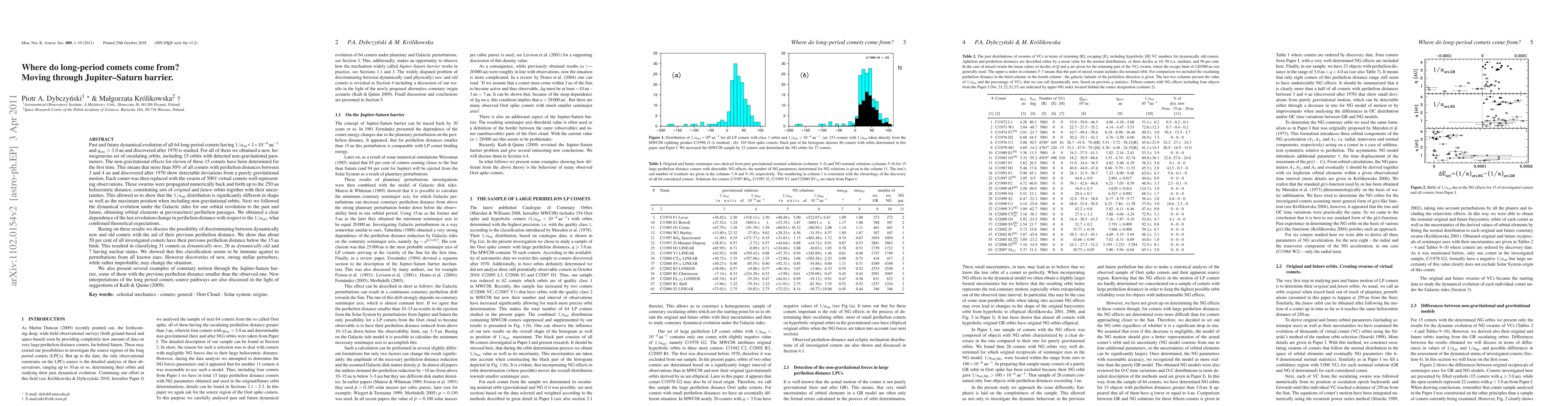Past and future dynamical evolution of all 64 long period comets having 1/aori< 1\times10-4 au-1 and qosc > 3.0 au and discovered after 1970 is studied. For all of them we obtained a new, homogeneous set of osculating orbits, including 15 orbits with detected non-gravitational parameters. The non-gravitational effects for eleven of these 15 comets have been determined for the first time. These were propagated numerically back and forth up to the 250 au heliocentric distance, constituting sets of original and future orbits together with their uncertainties. Next we followed the dynamical evolution under the Galactic tides for one orbital revolution to the past and future, obtaining orbital elements at previous/next perihelion passages. We obtained a clear dependence of the last revolution change in perihelion distance with respect to the 1/aori, what confirmed theoretical expectations. We show that about 50 per cent of all investigated comets have their previous perihelion distance below the 15 au limit. This resulted in classifying 31 comets as dynamically new, 26 as dynamically old and 7 having unclear status. We also present several examples of cometary motion through the Jupiter-Saturn barrier, some of them with the previous perihelion distance smaller than the observed one. New interpretations of the long period comets source pathways are also discussed in the light of suggestions of Kaib & Quinn (2009).