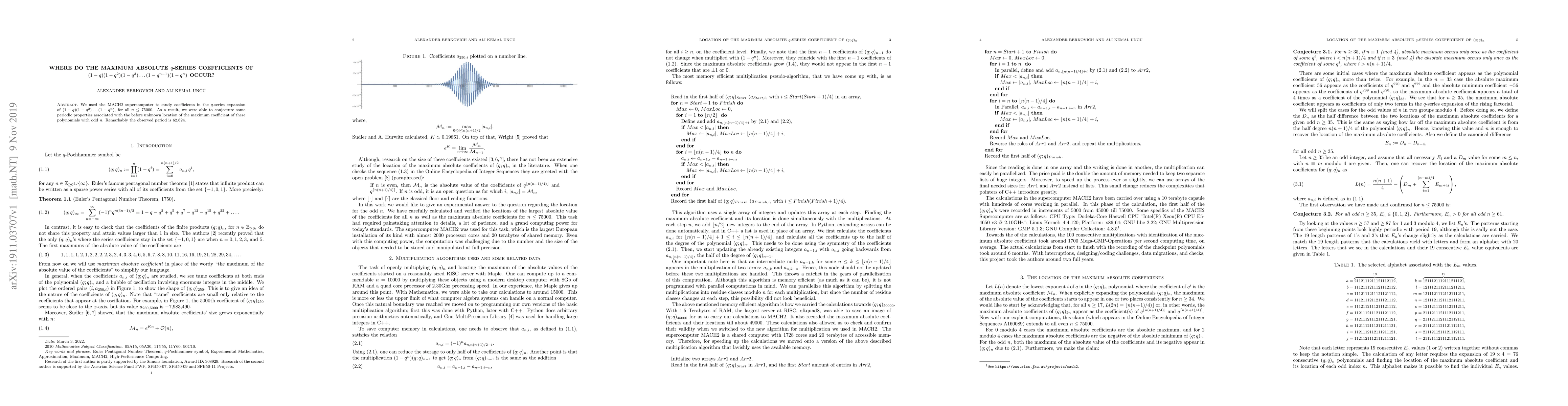 Researchers used supercomputing to study $q$-series coefficients in a mathematical polynomial expansion, discovering a periodic pattern with a period of 62,624 that helps locate the maximum absolute coefficient.