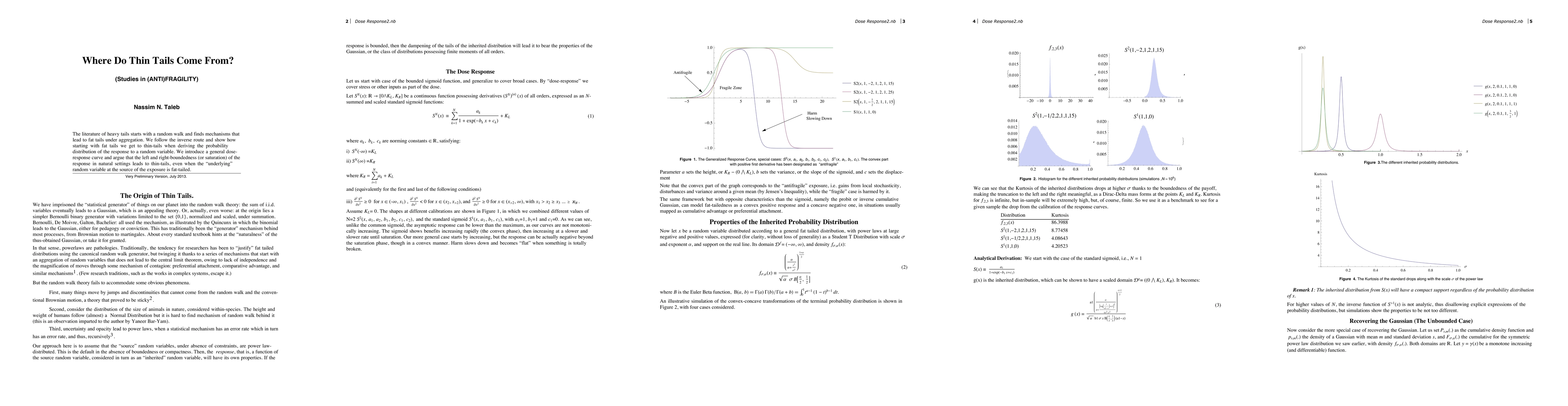This paper explores the origins of thin-tailed distributions by starting with fat-tailed random variables and demonstrating how boundedness or saturation in a general dose-response curve can lead to thin-tailed outcomes. It argues that natural processes inherently limit extreme responses, resulting in thin tails despite fat-tailed inputs.