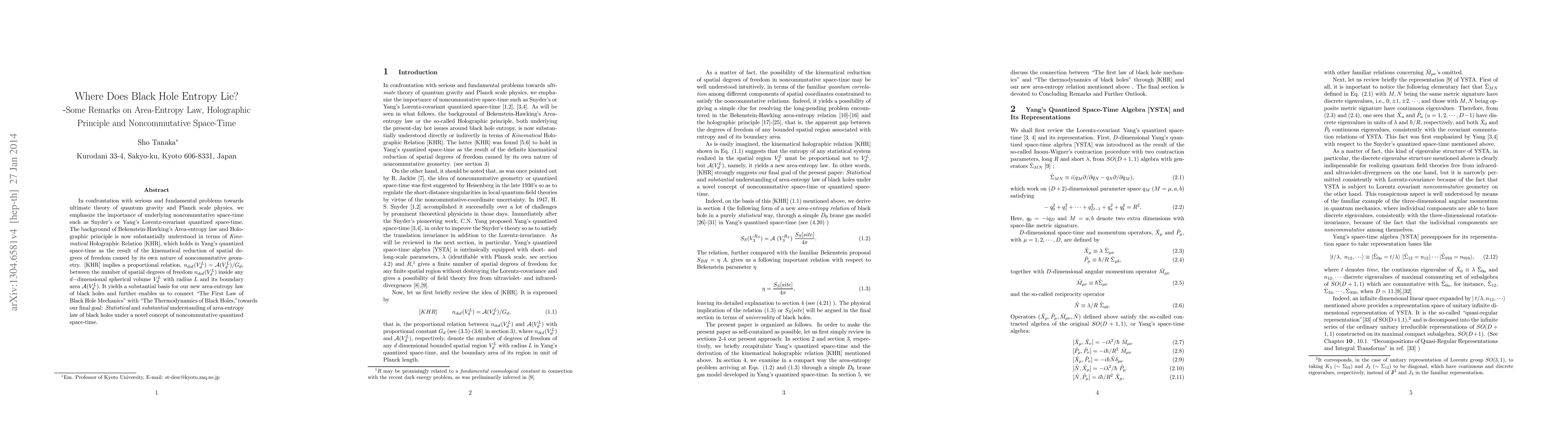 This paper explores the foundational aspects of black hole entropy, emphasizing the role of noncommutative space-time, particularly in the context of Yang's quantized space-time. It establishes a new area-entropy law by demonstrating a kinematical holographic relation (KHR) that links spatial degrees of freedom to the boundary area, aiming for a deeper understanding of black hole thermodynamics.