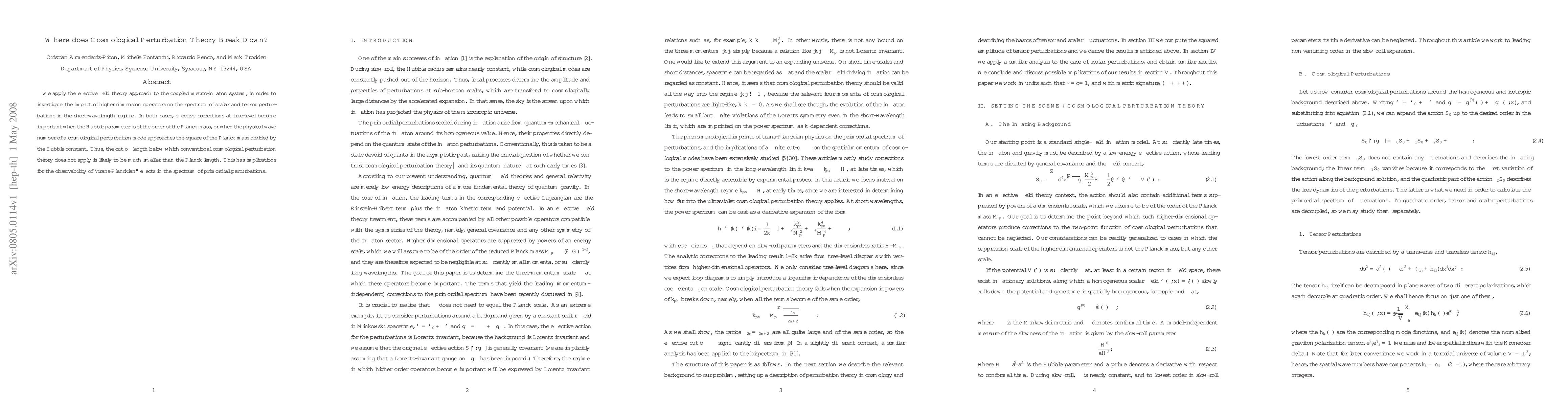 This paper investigates the limitations of cosmological perturbation theory using an effective field theory approach, finding that conventional theory breaks down when perturbations approach a scale much smaller than the Planck length, influenced by higher dimension operators. This suggests observable "trans-Planckian" effects in primordial perturbations.