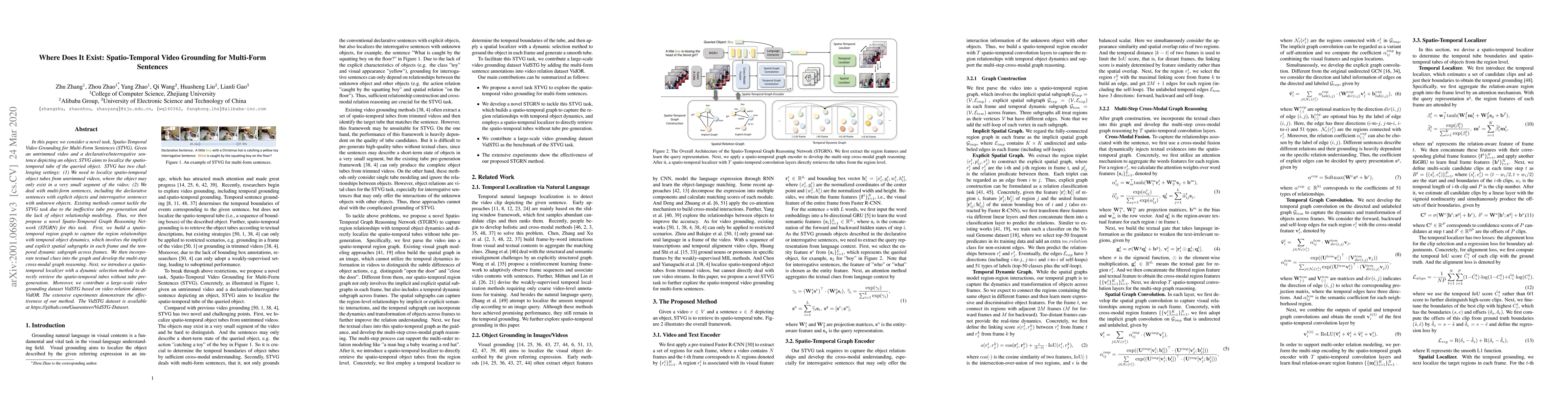This paper introduces a novel Spatio-Temporal Video Grounding for Multi-Form Sentences (STVG) task, aiming to localize object tubes in untrimmed videos from declarative and interrogative sentences. The proposed Spatio-Temporal Graph Reasoning Network (STGRN) addresses the challenges by building a spatio-temporal region graph and incorporating multi-step cross-modal reasoning, along with a spatio-temporal localizer to directly retrieve object tubes.