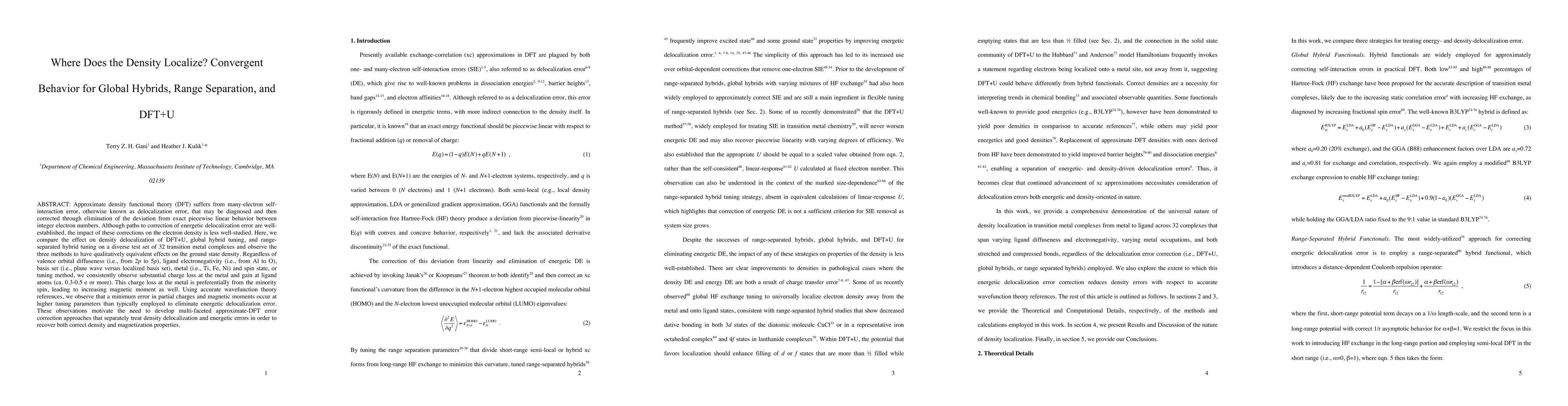 This paper investigates the impact of DFT+U, global hybrid, and range-separated hybrid methods on electron density for transition metal complexes, finding substantial charge loss at metals and gain at ligands, regardless of various factors. Accurate wavefunction theory reveals that minimal errors in partial charges and magnetic moments occur at higher tuning parameters, suggesting the need for separate correction approaches for density and energetic errors.