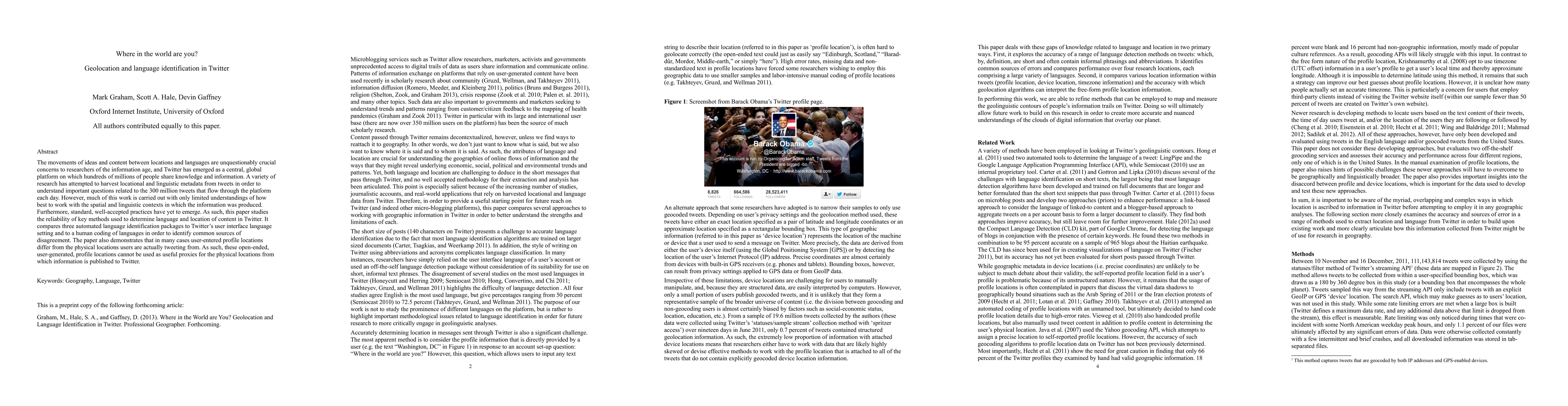 The movements of ideas and content between locations and languages are unquestionably crucial concerns to researchers of the information age, and Twitter has emerged as a central, global platform on which hundreds of millions of people share knowledge and information. A variety of research has attempted to harvest locational and linguistic metadata from tweets in order to understand important questions related to the 300 million tweets that flow through the platform each day. However, much of this work is carried out with only limited understandings of how best to work with the spatial and linguistic contexts in which the information was produced. Furthermore, standard, well-accepted practices have yet to emerge. As such, this paper studies the reliability of key methods used to determine language and location of content in Twitter. It compares three automated language identification packages to Twitter's user interface language setting and to a human coding of languages in order to identify common sources of disagreement. The paper also demonstrates that in many cases user-entered profile locations differ from the physical locations users are actually tweeting from. As such, these open-ended, user-generated, profile locations cannot be used as useful proxies for the physical locations from which information is published to Twitter.