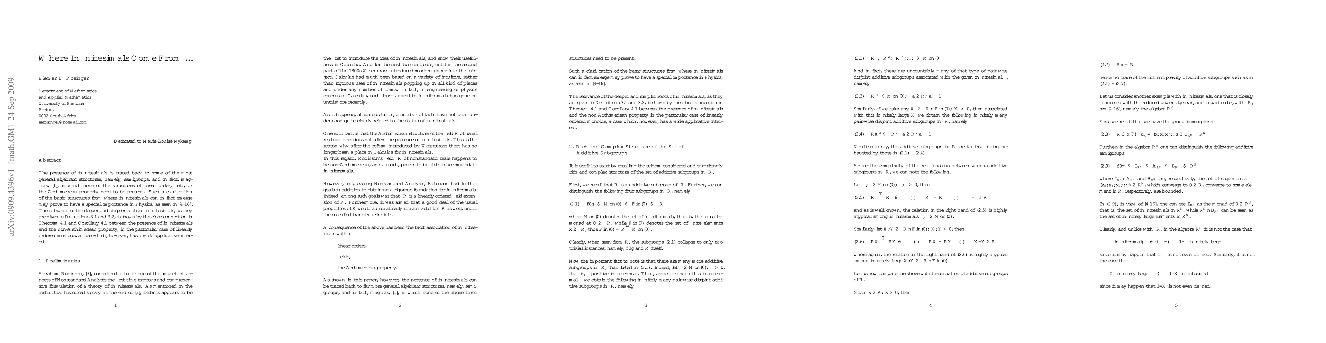 The research traces the origin of infinitesimals to general algebraic structures like semigroups and magmas, without requiring linear order, fields, or the Archimedean property.