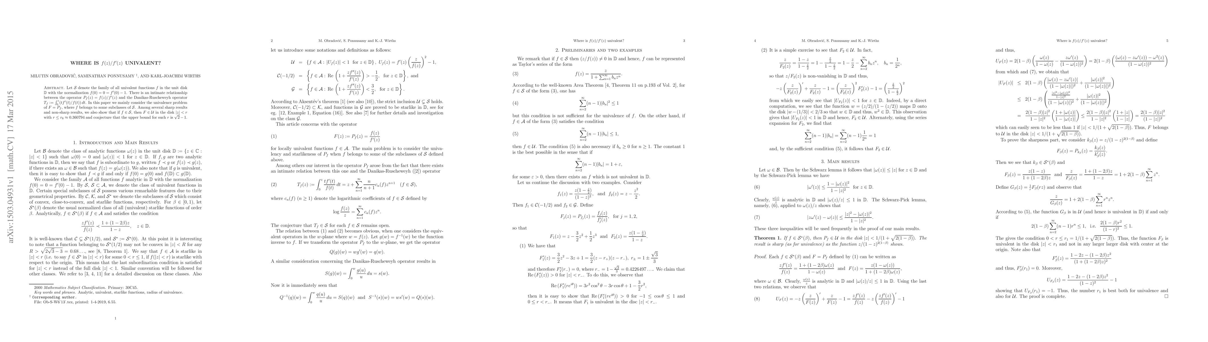 results, we also show that if $f\in {\mathcal S}$, then $F \in {\mathcal U}$ in