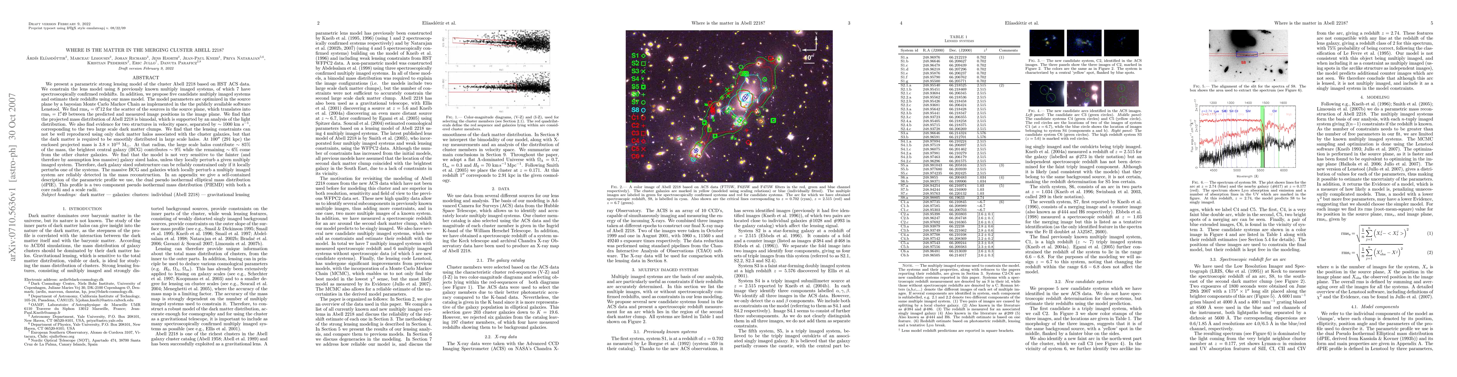 The research presents a strong lensing model for Abell 2218 cluster using HST ACS data, identifying 12 multiple image systems. It finds a bimodal projected mass distribution, with dark matter playing a significant role, contributing ~85% mass at 100". The model indicates dark matter is smoothly distributed in large-scale halos, not just associated with cluster galaxies. Faint galaxy-sized halos have minimal impact unless they locally perturb a multiple imaged system.