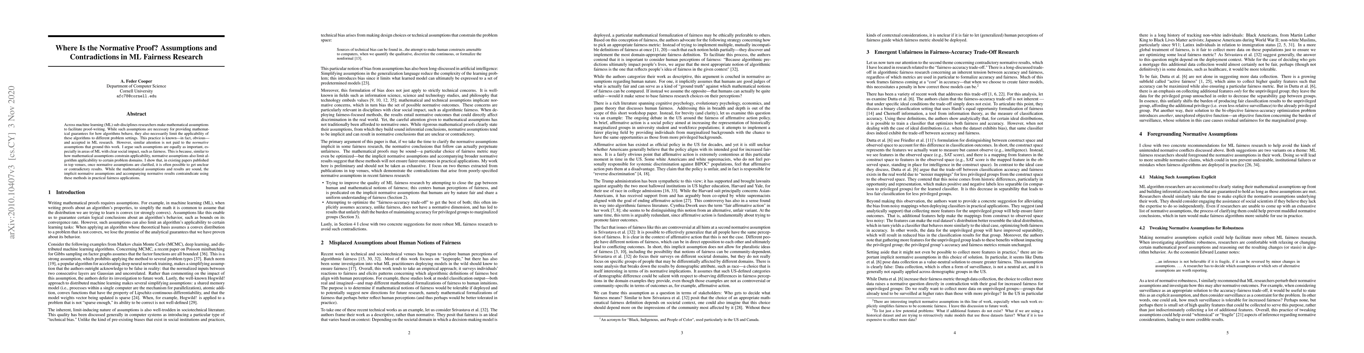 Across machine learning (ML) sub-disciplines researchers make mathematical assumptions to facilitate proof-writing. While such assumptions are necessary for providing mathematical guarantees for how algorithms behave, they also necessarily limit the applicability of these algorithms to different problem settings. This practice is known--in fact, obvious--and accepted in ML research. However, similar attention is not paid to the normative assumptions that ground this work. I argue such assumptions are equally as important, especially in areas of ML with clear social impact, such as fairness. This is because, similar to how mathematical assumptions constrain applicability, normative assumptions also limit algorithm applicability to certain problem domains. I show that, in existing papers published in top venues, once normative assumptions are clarified, it is often possible to get unclear or contradictory results. While the mathematical assumptions and results are sound, the implicit normative assumptions and accompanying normative results contraindicate using these methods in practical fairness applications.