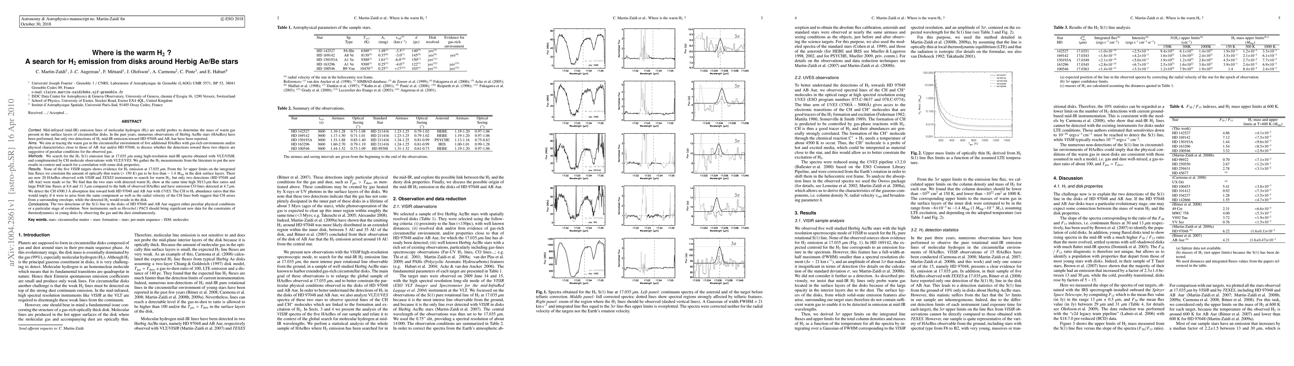Mid-IR emission lines of H2 are useful probes to determine the mass of warm gas present in the surface layers of disks. Numerous observations of Herbig Ae/Be stars (HAeBes) have been performed, but only 2 detections of mid-IR H2 toward HD97048 and AB Aur have been reported. We aim at tracing the warm gas in the disks of 5 HAeBes with gas-rich environments and physical characteristics close to those of AB Aur and HD97048, to discuss whether the detections toward these 2 objects are suggestive of peculiar conditions for the gas. We search for the H2 S(1) emission line at 17.035 \mu\m with VISIR, and complemented by CH molecule observations with UVES. We gather the H2 measurements from the literature to put the new results in context and search for a correlation with some disk properties. None of the 5 VISIR targets shows evidence for H2 emission. From the 3sigma upper limits on the integrated line fluxes we constrain the amount of optically thin warm gas to be less than 1.4 M_Jup in the disk surface layers. There are now 20 HAeBes observed with VISIR and TEXES instruments to search for warm H2, but only two detections (HD97048 and AB Aur) were made so far. We find that the two stars with detected warm H2 show at the same time high 30/13 \mu\m flux ratios and large PAH line fluxes at 8.6 and 11.3 \mu\m compared to the bulk of observed HAeBes and have emission CO lines detected at 4.7 \mu\m. We detect the CH 4300.3A absorption line toward both HD97048 and AB Aur with UVES. The CH to H2 abundance ratios that this would imply if it were to arise from the same component as well as the radial velocity of the CH lines both suggest that CH arises from a surrounding envelope, while the detected H2 would reside in the disk. The two detections of the S(1) line in the disks of HD97048 and AB Aur suggest either peculiar physical conditions or a particular stage of evolution.