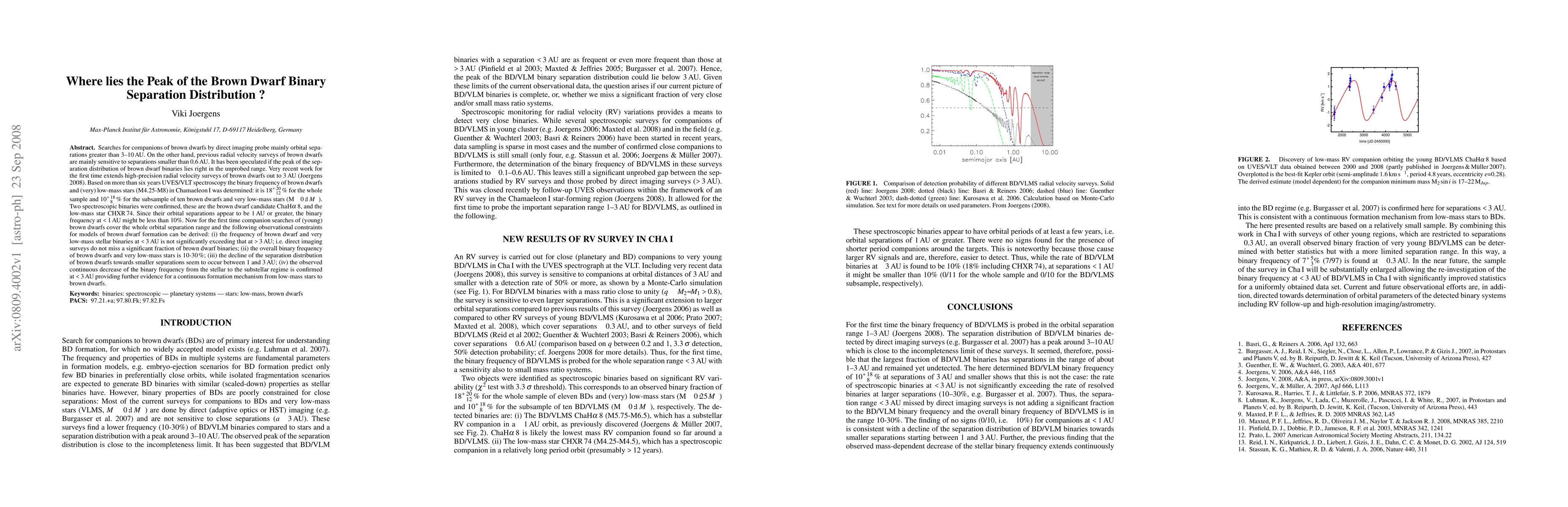Searches for companions of brown dwarfs by direct imaging probe mainly orbital separations > 3-10 AU. On the other hand, previous radial velocity surveys of brown dwarfs are mainly sensitive to separations smaller than 0.6 AU. It has been speculated if the peak of the separation distribution of brown dwarf binaries lies right in the unprobed range. Very recent work for the first time extends high-precision radial velocity surveys of brown dwarfs out to 3 AU (Joergens 2008, A&A). Based on more than six years UVES/VLT spectroscopy the binary frequency of brown dwarfs and (very) low-mass stars (M4.25-M8) in ChaI was determined: it is 18% for the whole sample and 10% for the subsample of ten brown dwarfs and VLMS (M < 0.1 Msun). Two spectroscopic binaries were confirmed, these are the brown dwarf candidate ChaHa8, and the low-mass star CHXR74. Since their orbital separations appear to be 1 AU or greater, the binary frequency at < 1 AU might be less than 10%. Now for the first time companion searches of (young) brown dwarfs cover the whole orbital separation range and the following observational constraints for models of brown dwarf formation can be derived: (i) the frequency of brown dwarf and very low-mass stellar binaries at < 3 AU is not significantly exceeding that at > 3 AU; i.e. direct imaging surveys do not miss a significant fraction of brown dwarf binaries; (ii) the overall binary frequency of brown dwarfs and very low-mass stars is 10-30 %; (iii) the decline of the separation distribution of brown dwarfs towards smaller separations seem to occur between 1 and 3 AU; (iv) the observed continuous decrease of the binary frequency from the stellar to the substellar regime is confirmed at < 3 AU providing further evidence for a continuous formation mechanism from low-mass stars to brown dwarfs.