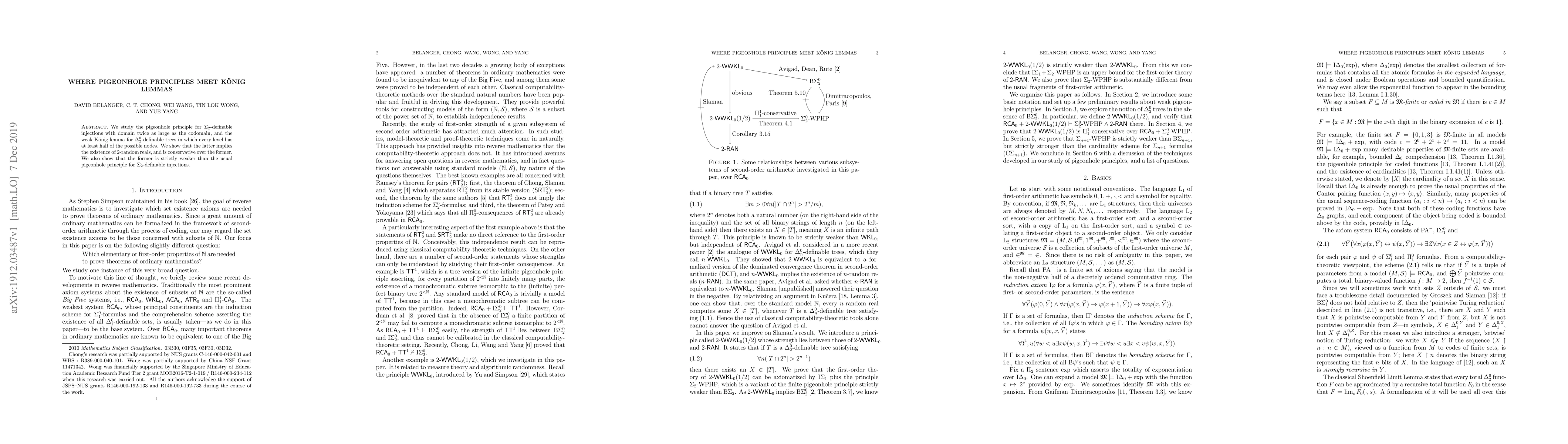 We study the pigeonhole principle for $\Sigma_2$-definable injections with domain twice as large as the codomain, and the weak K\"onig lemma for $\Delta^0_2$-definable trees in which every level has at least half of the possible nodes. We show that the latter implies the existence of $2$-random reals, and is conservative over the former. We also show that the former is strictly weaker than the usual pigeonhole principle for $\Sigma_2$-definable injections.