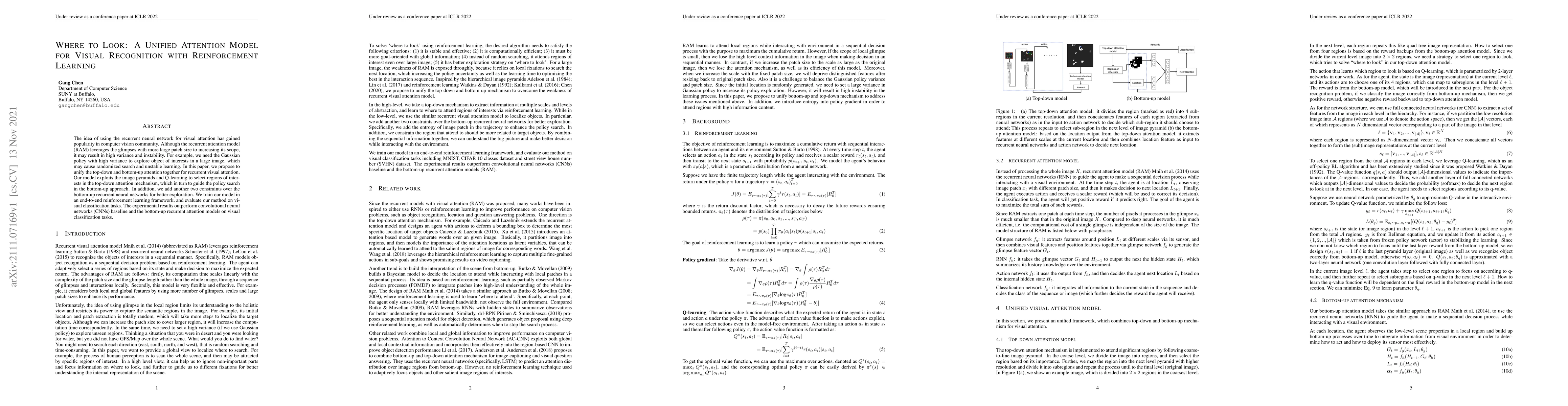 This paper proposes a unified attention model combining top-down and bottom-up mechanisms for visual recognition, utilizing image pyramids and Q-learning to enhance exploration. The model outperforms CNNs and bottom-up recurrent attention models in visual classification tasks.