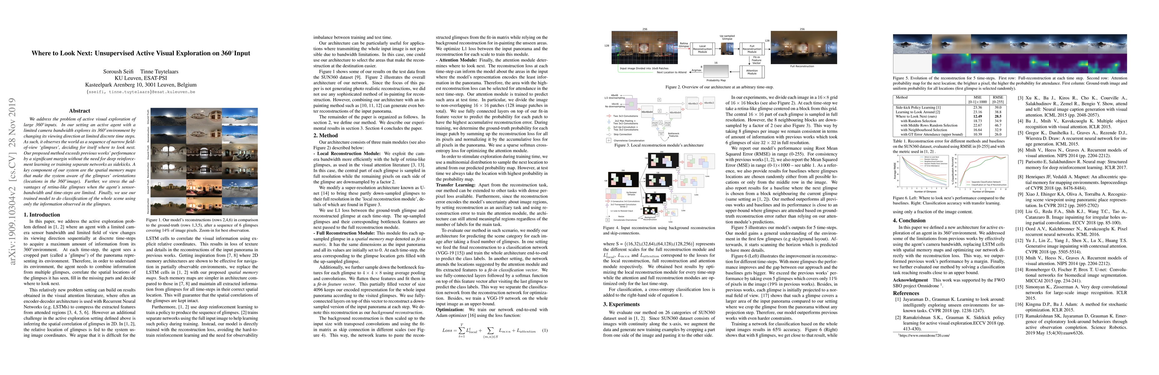 We address the problem of active visual exploration of large 360{\deg} inputs. In our setting an active agent with a limited camera bandwidth explores its 360{\deg} environment by changing its viewing direction at limited discrete time steps. As such, it observes the world as a sequence of narrow field-of-view 'glimpses', deciding for itself where to look next. Our proposed method exceeds previous works' performance by a significant margin without the need for deep reinforcement learning or training separate networks as sidekicks. A key component of our system are the spatial memory maps that make the system aware of the glimpses' orientations (locations in the 360{\deg} image). Further, we stress the advantages of retina-like glimpses when the agent's sensor bandwidth and time-steps are limited. Finally, we use our trained model to do classification of the whole scene using only the information observed in the glimpses.