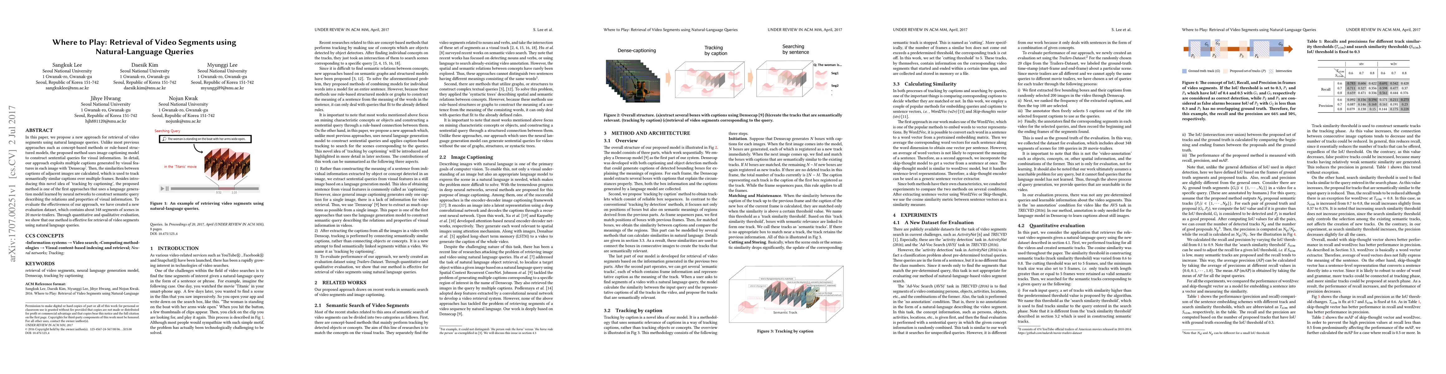 This paper introduces a novel method for retrieving video segments using natural language queries by employing an image captioning model to generate sentential queries. The method tracks semantically similar captions over multiple frames, demonstrating effectiveness through a newly created evaluation dataset.