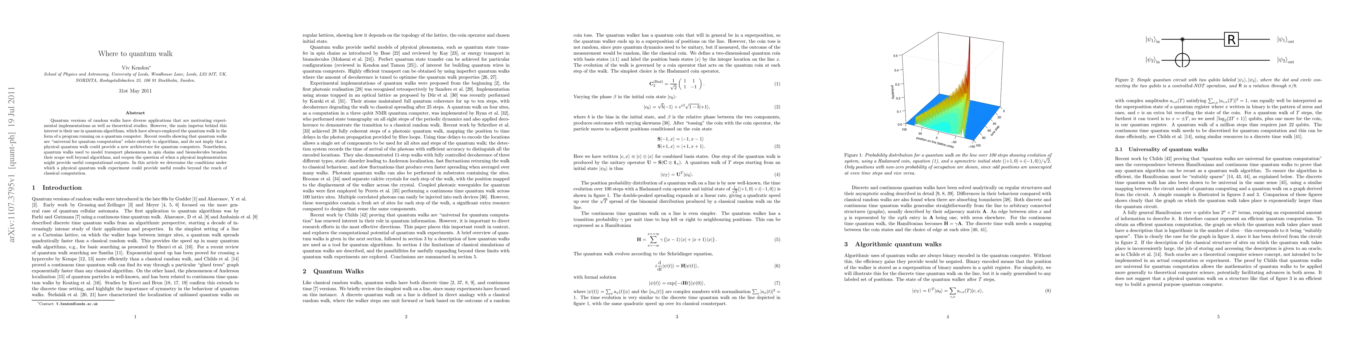 Quantum versions of random walks have diverse applications that are motivating experimental implementations as well as theoretical studies. However, the main impetus behind this interest is their use in quantum algorithms, which have always employed the quantum walk in the form of a program running on a quantum computer. Recent results showing that quantum walks are "universal for quantum computation" relate entirely to algorithms, and do not imply that a physical quantum walk could provide a new architecture for quantum computers. Nonetheless, quantum walks used to model transport phenomena in spin chains and biomolecules broaden their scope well beyond algorithms, and reopen the question of when a physical implementation might provide useful computational outputs. In this article we determine the conditions under which a physical quantum walk experiment could provide useful results beyond the reach of classical computation.