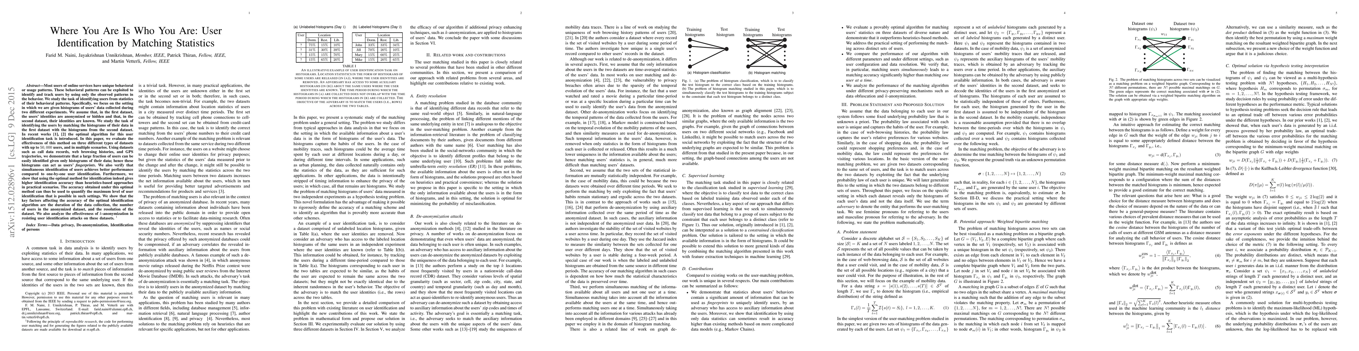 Researchers created a method to identify users based on their online behavior patterns, finding that user fingerprints can accurately track individuals using only histogram data.