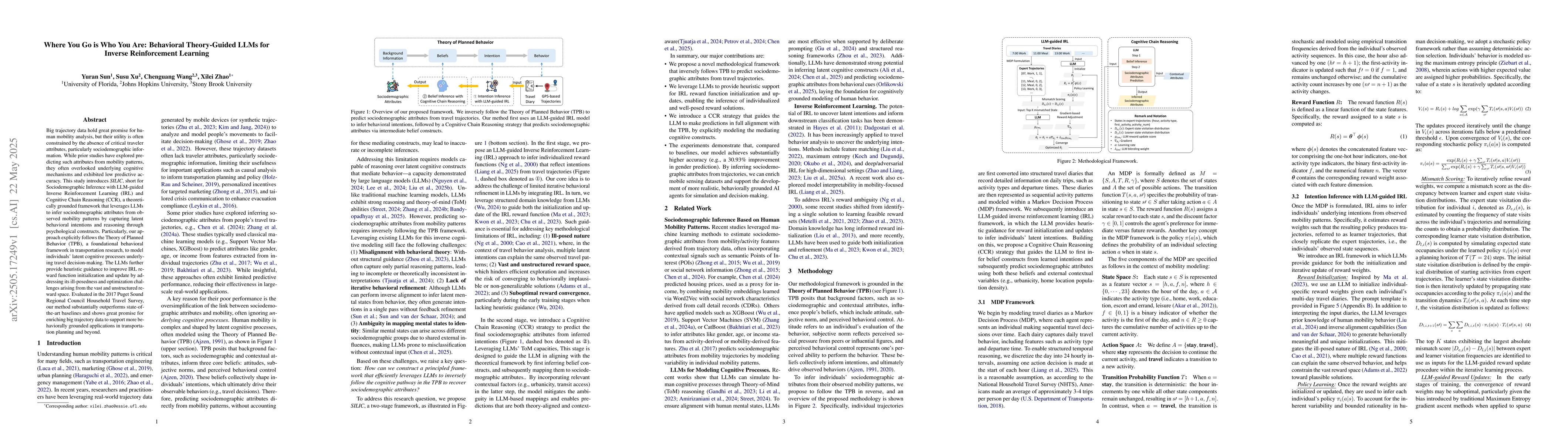SILIC distinguishes itself by explicitly modeling latent cognitive processes underlying travel decisions using TPB, and by employing LLMs to enhance IRL through heuristic guidance.