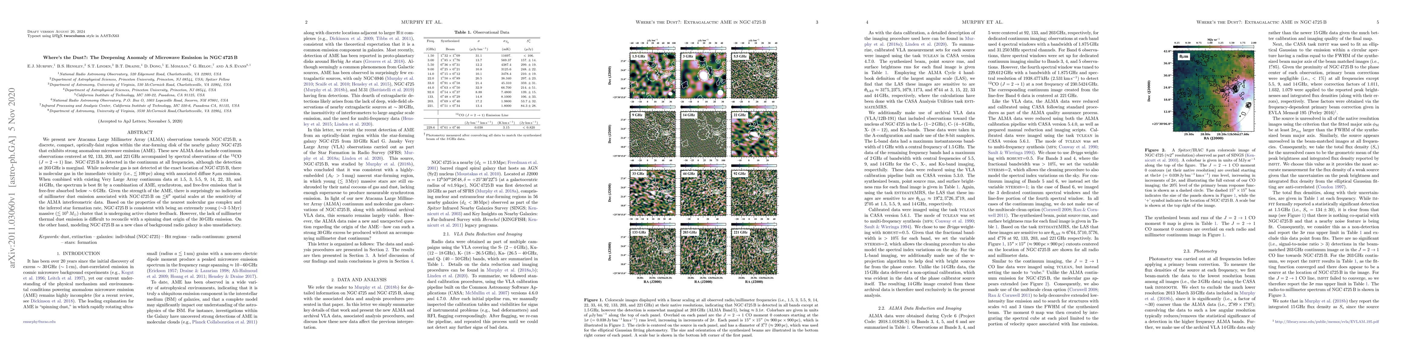 We present new Atacama Large Millimeter Array (ALMA) observations towards NGC 4725 B, a discrete, compact, optically-faint region within the star-forming disk of the nearby galaxy NGC 4725 that exhibits strong anomalous microwave emission (AME). These new ALMA data include continuum observations centered at 92, 133, 203, and 221 GHz accompanied by spectral observations of the $^{12}$CO ($J=2\rightarrow1$) line. NGC 4725 B is detected in the continuum at all frequencies, although the detection at 203 GHz is marginal. While molecular gas is not detected at the exact location of NGC 4725 B, there is molecular gas in the immediate vicinity (i.e., $\lesssim 100$ pc) along with associated diffuse 8 $\mu$m emission. When combined with existing Very Large Array continuum data at 1.5, 3, 5.5, 9, 14, 22, 33, and 44 GHz, the spectrum is best fit by a combination of AME, synchrotron, and free-free emission that is free-free absorbed below $\sim6$ GHz. Given the strength of the AME, there is surprisingly no indication of millimeter dust emission associated with NGC 4725 B on $\lesssim$6\arcsec~spatial scales at the sensitivity of the ALMA interferometric data. Based on the properties of the nearest molecular gas complex and the inferred star formation rate, NGC 4725 B is consistent with being an extremely young ($\sim 3-5$ Myr) massive ($\lesssim 10^{5} M_{\odot}$) cluster that is undergoing active cluster feedback. However, the lack of millimeter thermal dust emission is difficult to reconcile with a spinning dust origin of the 30 GHz emission. On the other hand, modeling NGC 4725 B as a new class of background radio galaxy is also unsatisfactory.