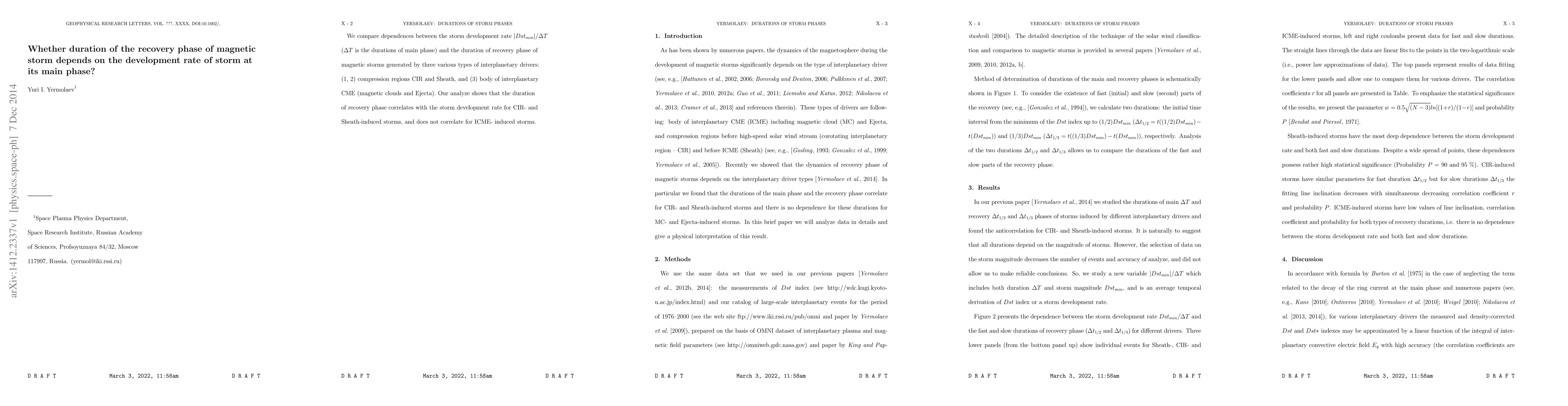 This study investigates the relationship between the development rate of magnetic storms during their main phase and the duration of their recovery phase, finding a correlation for CIR and Sheath-induced storms but not for those driven by interplanetary coronal mass ejections (ICMEs).
