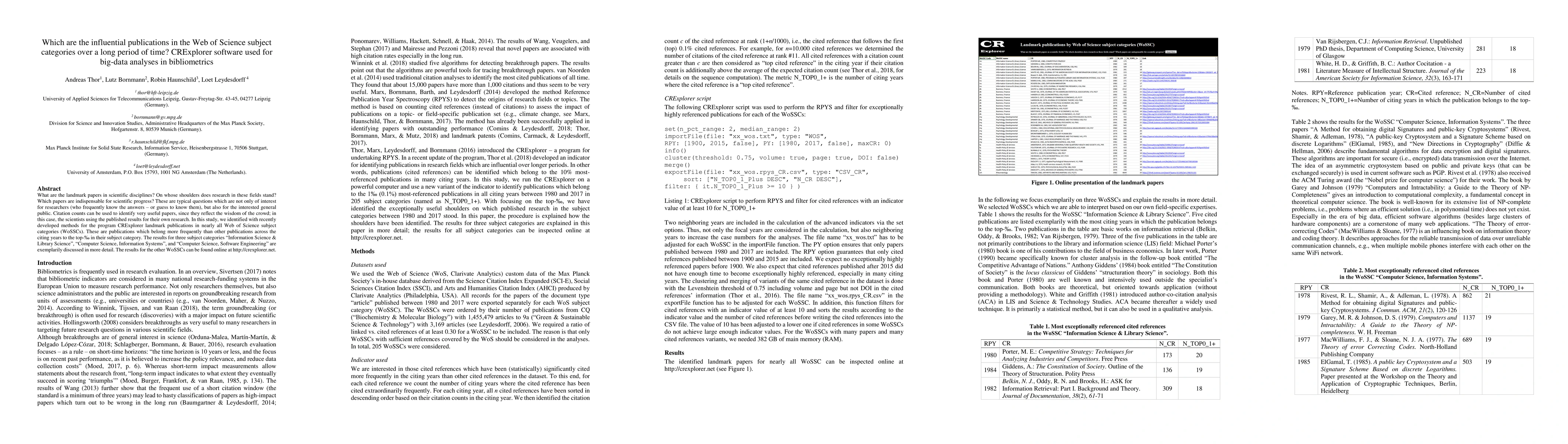 This study identifies influential landmark publications in various Web of Science subject categories using the CRExplorer software for big-data bibliometrics. The research highlights top-per-mill publications frequently cited across years, with detailed discussions on "Information Science and Library Science", "Computer Science, Information Systems", and "Computer Science, Software Engineering".