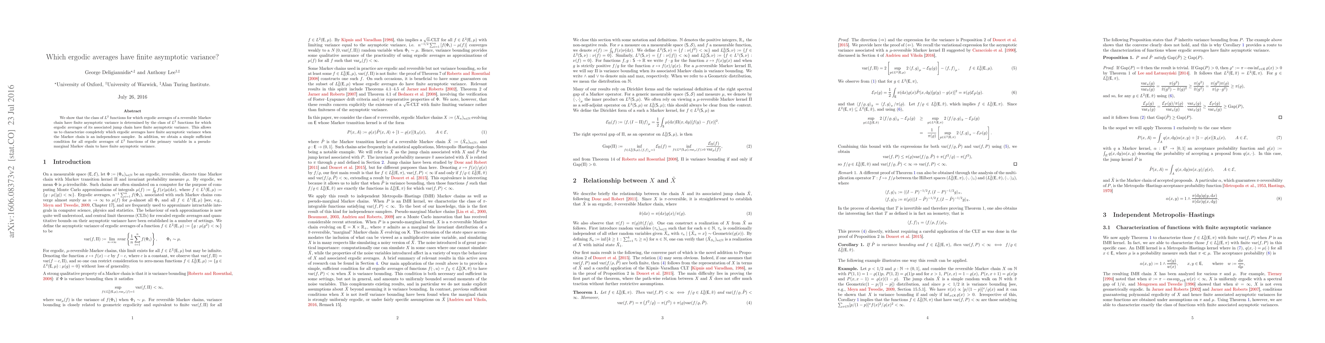 We show that the class of $L^2$ functions for which ergodic averages of a reversible Markov chain have finite asymptotic variance is determined by the class of $L^2$ functions for which ergodic averages of its associated jump chain have finite asymptotic variance. This allows us to characterize completely which ergodic averages have finite asymptotic variance when the Markov chain is an independence sampler. In addition, we obtain a simple sufficient condition for all ergodic averages of $L^2$ functions of the primary variable in a pseudo-marginal Markov chain to have finite asymptotic variance.
