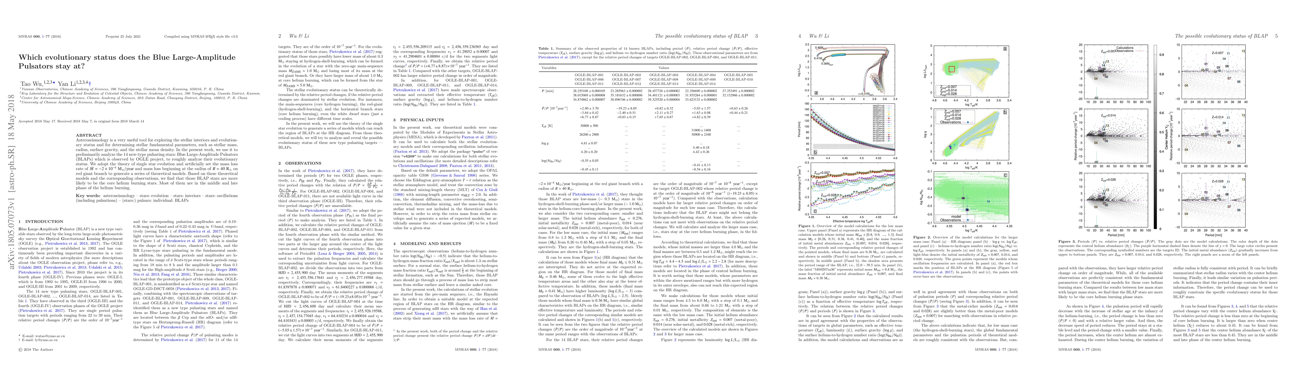 Asteroseismology is a very useful tool for exploring the stellar interiors and evolutionary status and for determining stellar fundamental parameters, such as stellar mass, radius, surface gravity, and the stellar mean density. In the present work, we use it to preliminarily analyze the 14 new-type pulsating stars: Blue Large-Amplitude Pulsators (BLAPs) which is observed by OGLE project, to roughly analyze their evolutionary status. We adopt the theory of single star evolution and artificially set the mass loss rate of $\dot{M}=-2\times10^{-4}~{\rm M_{\odot}/year}$ and mass loss beginning at the radius of $R=40$ $\rm R_{\odot}$ on red giant branch to generate a series of theoretical models. Based on these theoretical models and the corresponding observations, we find that those BLAP stars are more likely to be the core helium burning stars. Most of them are in the middle and late phase of the helium burning.