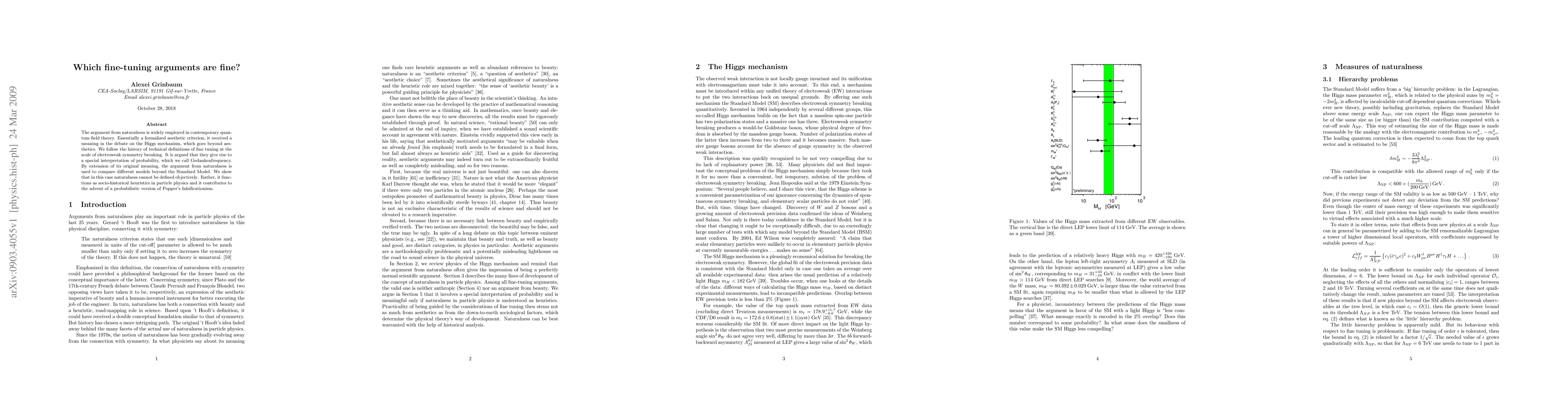 The argument from naturalness is widely employed in contemporary quantum field theory. Essentially a formalized aesthetic criterion, it received a meaning in the debate on the Higgs mechanism, which goes beyond aesthetics. We follow the history of technical definitions of fine tuning at the scale of electroweak symmetry breaking. It is argued that they give rise to a special interpretation of probability, which we call Gedankenfrequency. By extension of its original meaning, the argument from naturalness is used to compare different models beyond the Standard Model. We show that in this case naturalness cannot be defined objectively. Rather, it functions as socio-historical heuristics in particle physics and it contributes to the advent of a probabilistic version of Popper's falsificationism.