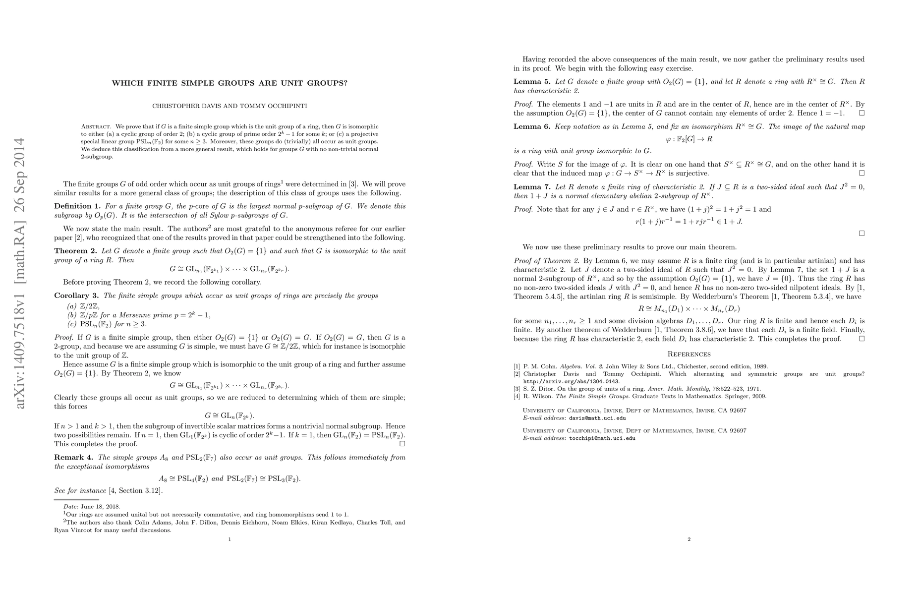 We prove that if $G$ is a finite simple group which is the unit group of a ring, then $G$ is isomorphic to either (a) a cyclic group of order 2; (b) a cyclic group of prime order $2^k -1$ for some $k$; or (c) a projective special linear group $PSL_n(\mathbb{F}_2)$ for some $n \geq 3$. Moreover, these groups do (trivially) all occur as unit groups. We deduce this classification from a more general result, which holds for groups $G$ with no non-trivial normal 2-subgroup.