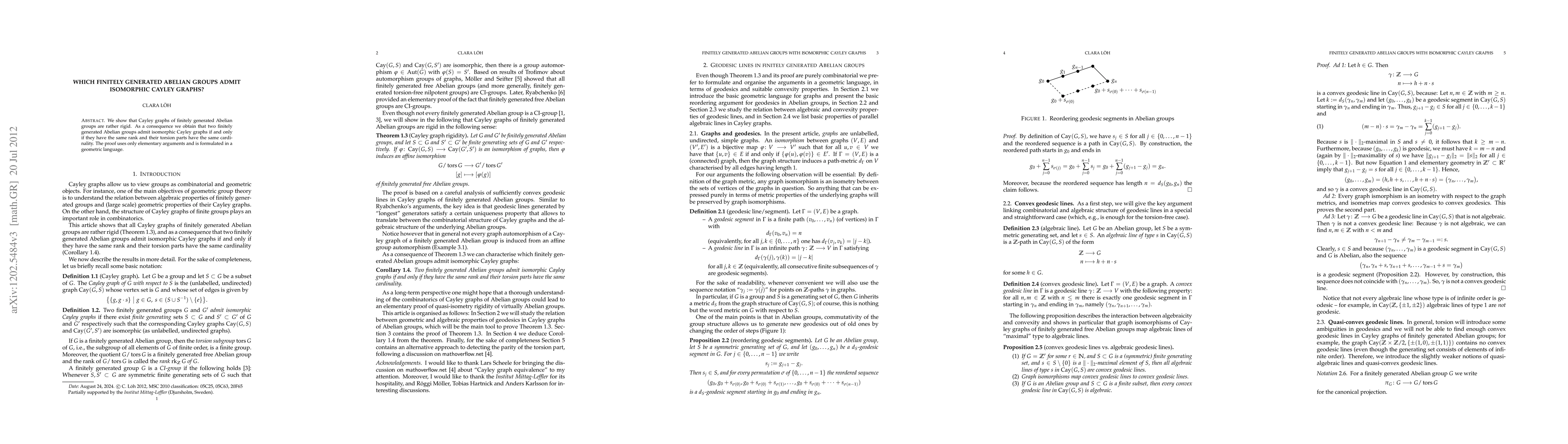 This paper demonstrates that the Cayley graphs of finitely generated Abelian groups are highly structured, concluding that two such groups have isomorphic Cayley graphs if and only if they share the same rank and have torsion parts of equal cardinality. The proof employs basic geometric reasoning.