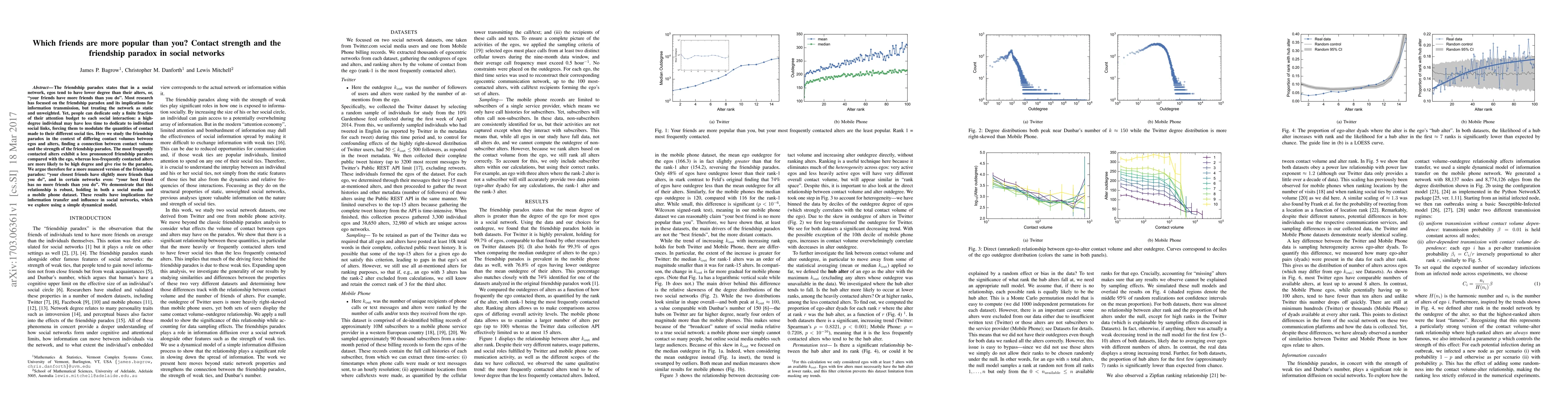 The friendship paradox reveals that individuals tend to have fewer friends than their more connected peers, but this effect varies with contact strength. Close friends of an individual often have fewer connections, whereas less frequently contacted friends are more likely to be highly connected, highlighting a nuanced version of the paradox. This relationship holds in both social media and mobile phone datasets, affecting information transfer and influence in social networks.