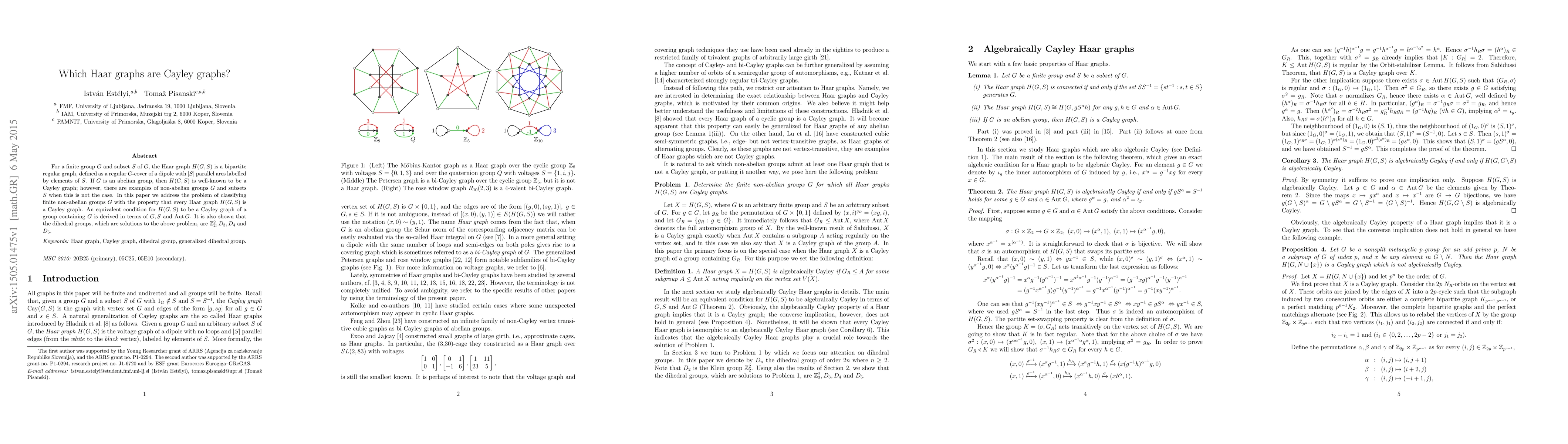 For a finite group $G$ and subset $S$ of $G,$ the Haar graph $H(G,S)$ is a bipartite regular graph, defined as a regular $G$-cover of a dipole with $|S|$ parallel arcs labelled by elements of $S$. If $G$ is an abelian group, then $H(G,S)$ is well-known to be a Cayley graph; however, there are examples of non-abelian groups $G$ and subsets $S$ when this is not the case. In this paper we address the problem of classifying finite non-abelian groups $G$ with the property that every Haar graph $H(G,S)$ is a Cayley graph. An equivalent condition for $H(G,S)$ to be a Cayley graph of a group containing $G$ is derived in terms of $G, S$ and $\mathrm{Aut }G$. It is also shown that the dihedral groups, which are solutions to the above problem, are $\mathbb{Z}_2^2,D_3,D_4$ and $D_{5}$.