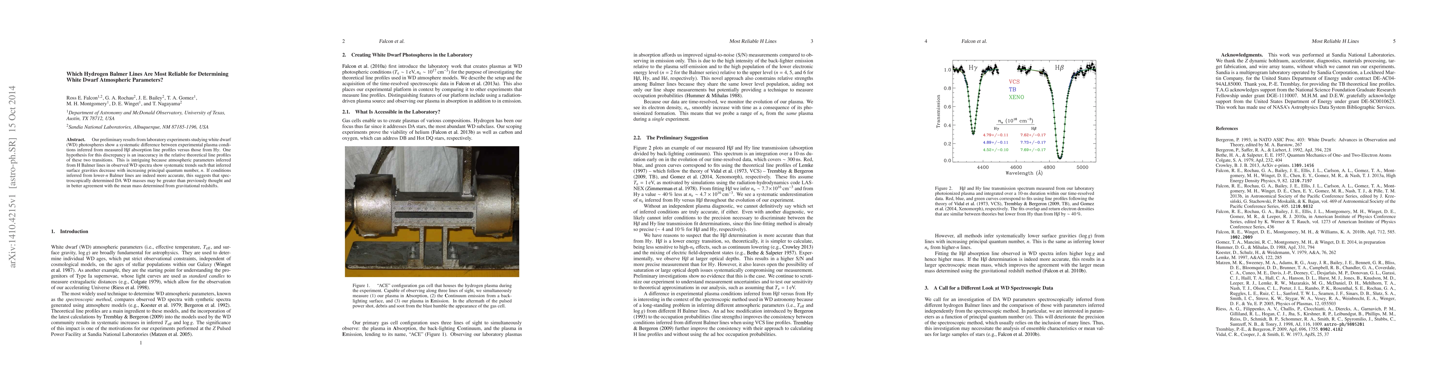 Our preliminary results from laboratory experiments studying white dwarf (WD) photospheres show a systematic difference between experimental plasma conditions inferred from measured H$\beta$ absorption line profiles versus those from H$\gamma$. One hypothesis for this discrepancy is an inaccuracy in the relative theoretical line profiles of these two transitions. This is intriguing because atmospheric parameters inferred from H Balmer lines in observed WD spectra show systematic trends such that inferred surface gravities decrease with increasing principal quantum number, $n$. If conditions inferred from lower-$n$ Balmer lines are indeed more accurate, this suggests that spectroscopically determined DA WD masses may be greater than previously thought and in better agreement with the mean mass determined from gravitational redshifts.