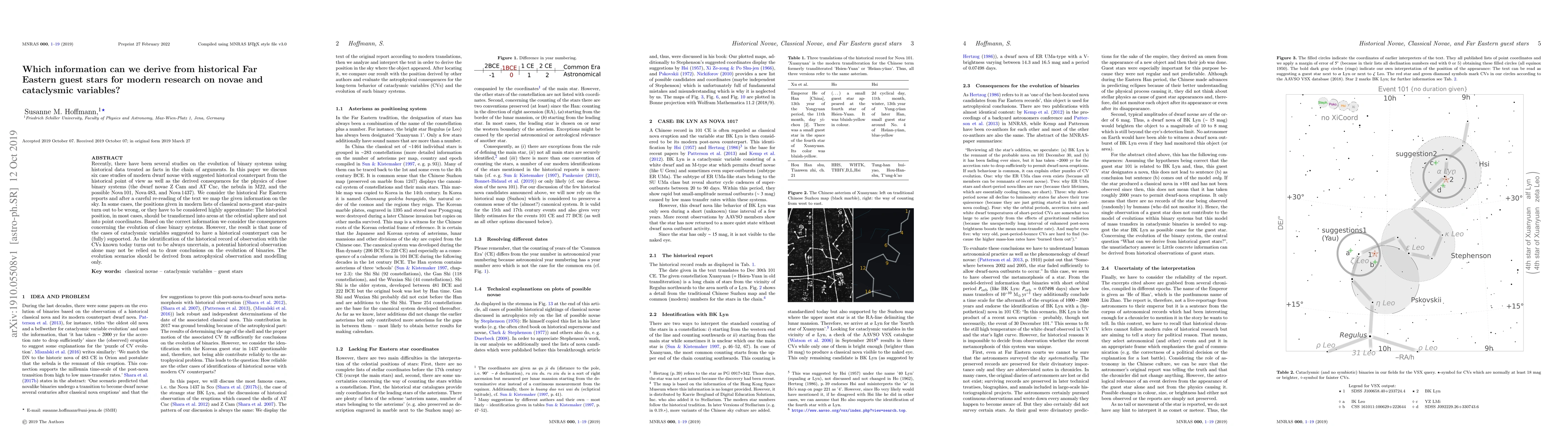 This paper examines historical Far Eastern records of guest stars to explore their relevance to modern research on novae and cataclysmic variables, finding that while historical data can provide interesting leads, they cannot fully support conclusions about the evolution of binary systems due to uncertainties in historical positions. Modern astrophysical observations and modelling remain the primary sources for understanding binary evolution.