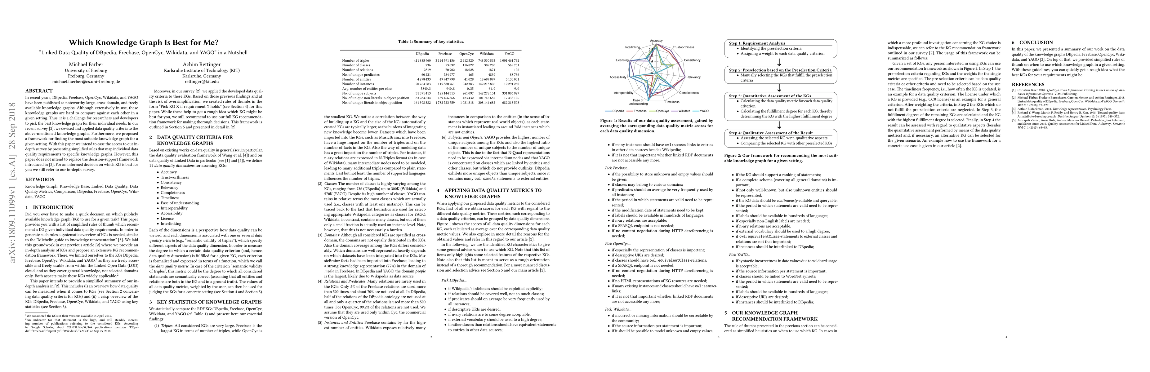 In recent years, DBpedia, Freebase, OpenCyc, Wikidata, and YAGO have been published as noteworthy large, cross-domain, and freely available knowledge graphs. Although extensively in use, these knowledge graphs are hard to compare against each other in a given setting. Thus, it is a challenge for researchers and developers to pick the best knowledge graph for their individual needs. In our recent survey, we devised and applied data quality criteria to the above-mentioned knowledge graphs. Furthermore, we proposed a framework for finding the most suitable knowledge graph for a given setting. With this paper we intend to ease the access to our in-depth survey by presenting simplified rules that map individual data quality requirements to specific knowledge graphs. However, this paper does not intend to replace our previously introduced decision-support framework. For an informed decision on which KG is best for you we still refer to our in-depth survey.