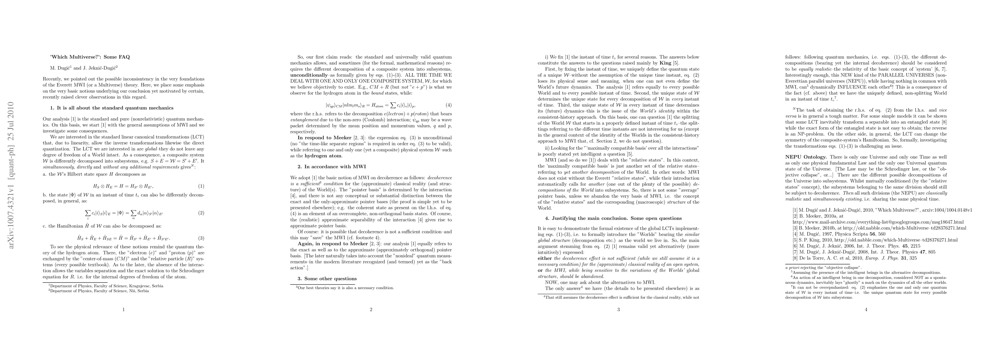 Recently, we pointed out the possible inconsistency in the very foundations of the Everett MWI (or a Multiverse) theory. Here, we place some emphasis on the very basic notions underlying our conclusion yet motivated by certain, recently raised clever observations in this regard.
