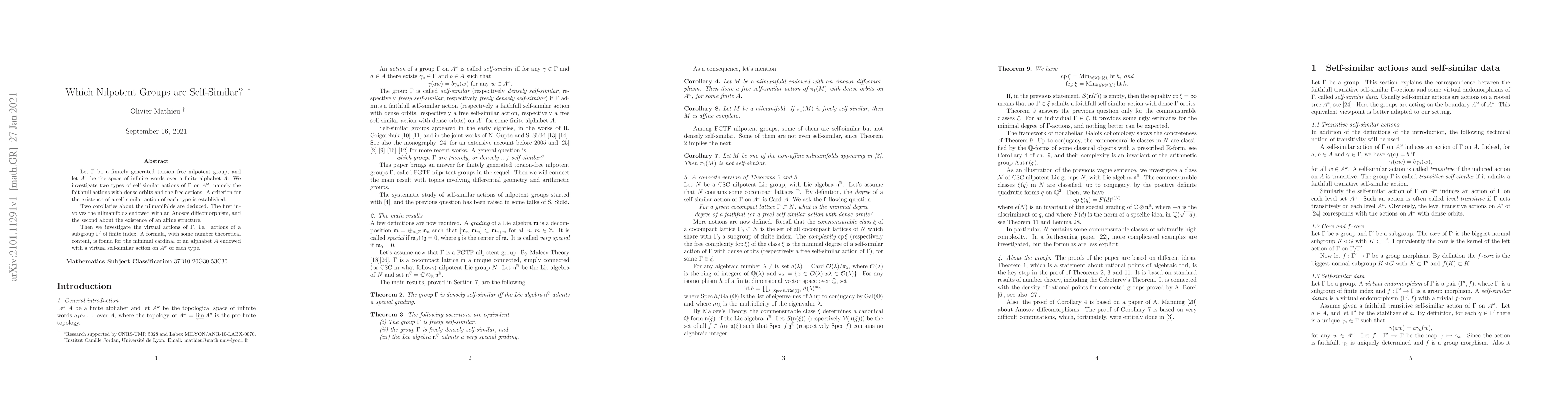 This research paper investigates self-similar actions of nilpotent groups on infinite words, establishing criteria for their existence and implications for nilmanifolds and virtual actions.