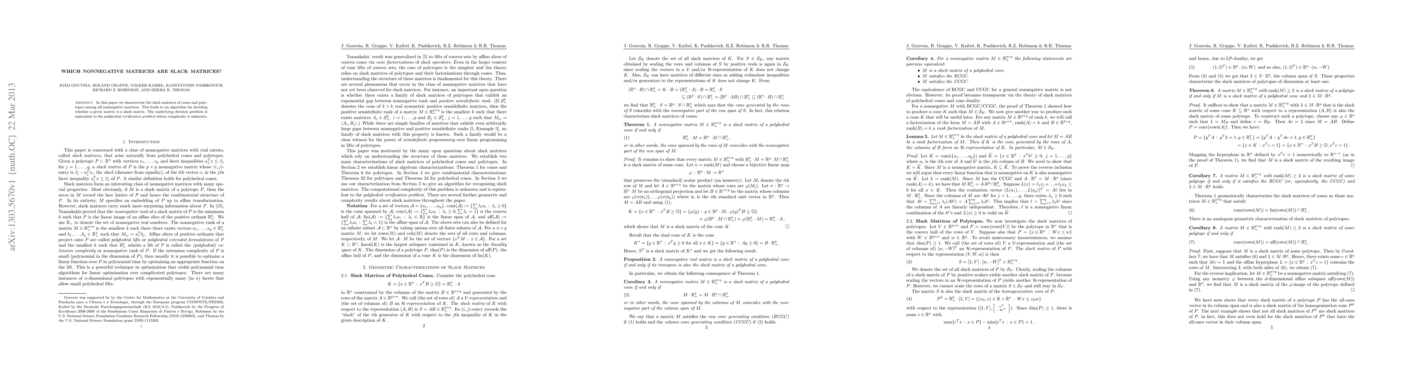 This paper identifies which nonnegative matrices can serve as slack matrices for cones and polytopes, providing an algorithm to determine if a given matrix meets this criterion. The decision problem associated with this characterization parallels the complex and undetermined complexity of polyhedral verification.