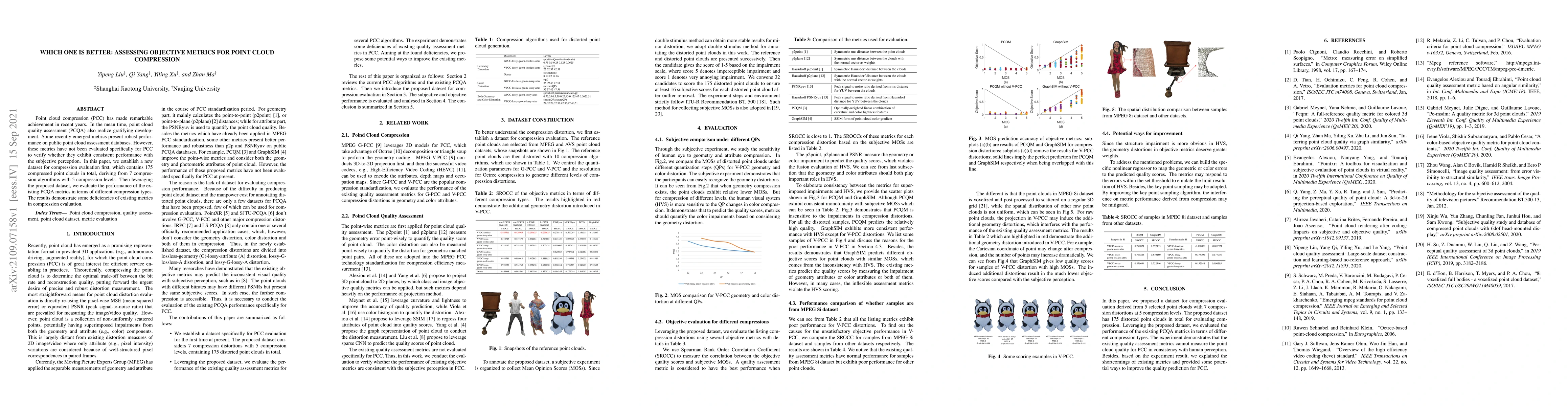 This paper establishes a new dataset for evaluating point cloud compression (PCC) and assesses the performance of existing point cloud quality assessment (PCQA) metrics on this dataset. The results reveal deficiencies in existing metrics when evaluating different compression types, highlighting the need for specialized PCC evaluation metrics.
