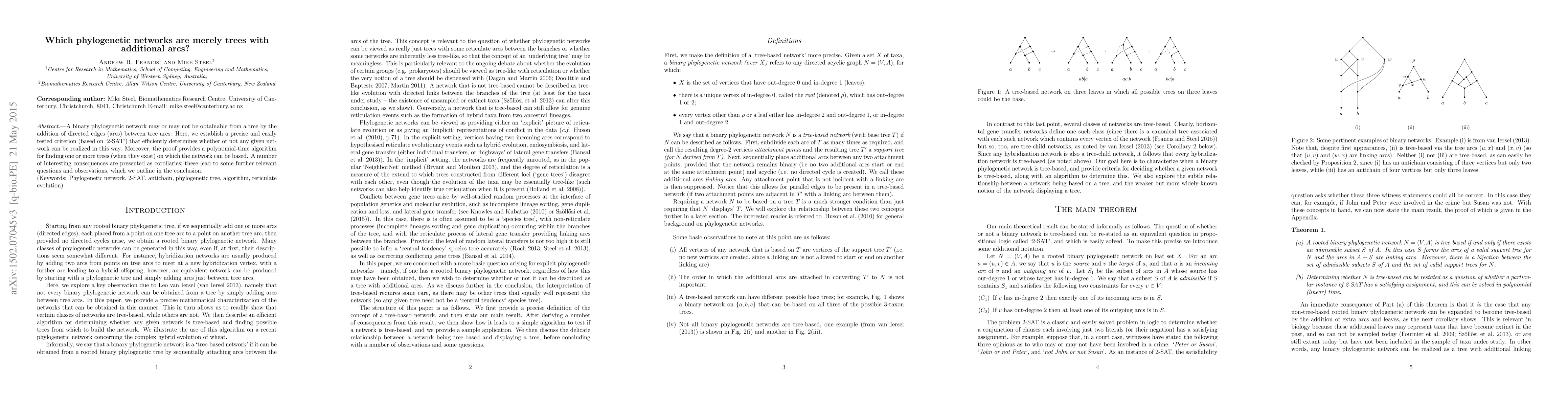 This paper presents a criterion based on `2-SAT' to determine whether a binary phylogenetic network can be derived from a tree by adding directed arcs, and provides a polynomial-time algorithm for finding such trees if they exist. The study also outlines interesting consequences and raises further questions regarding phylogenetic networks.