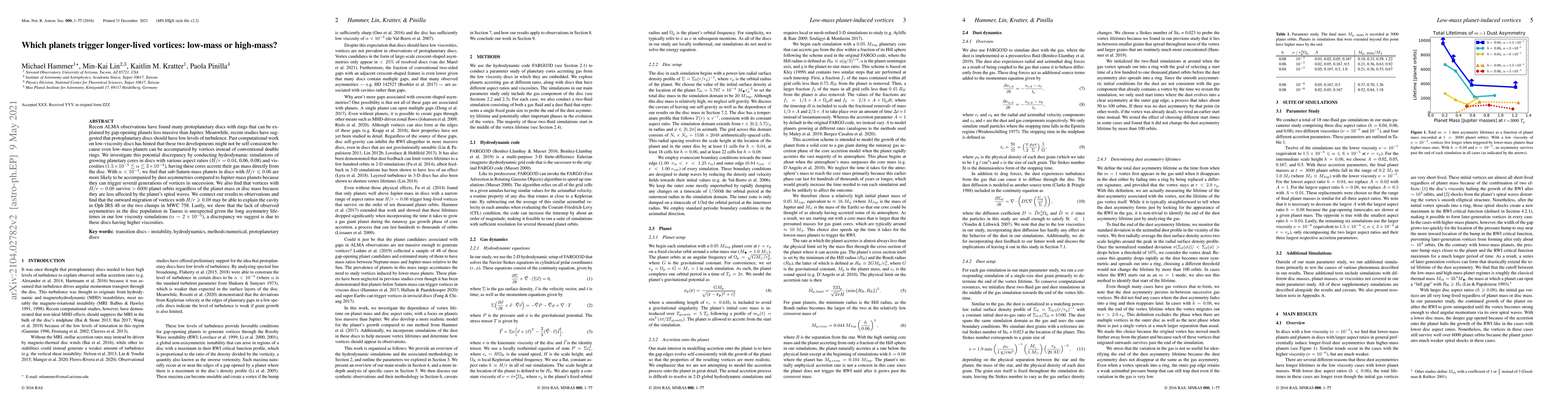 Recent ALMA observations have found many protoplanetary discs with rings that can be explained by gap-opening planets less massive than Jupiter. Meanwhile, recent studies have suggested that protoplanetary discs should have low levels of turbulence. Past computational work on low-viscosity discs has hinted that these two developments might not be self-consistent because even low-mass planets can be accompanied by vortices instead of conventional double rings. We investigate this potential discrepancy by conducting hydrodynamic simulations of growing planetary cores in discs with various aspect ratios ($H/r=0.04$, 0.06, 0.08) and viscosities ($1.5 \times 10^{-5} \lesssim \alpha \lesssim 3 \times 10^{-4}$), having these cores accrete their gas mass directly from the disc. With $\alpha < 10^{-4}$, we find that sub-Saturn-mass planets in discs with $H/r \le 0.06$ are more likely to be accompanied by dust asymmetries compared to Jupiter-mass planets because they can trigger several generations of vortices in succession. We also find that vortices with $H/r = 0.08$ survive $>6000$ planet orbits regardless of the planet mass or disc mass because they are less affected by the planet's spiral waves. We connect our results to observations and find that the outward migration of vortices with $H/r \ge 0.08$ may be able to explain the cavity in Oph IRS 48 or the two clumps in MWC 758. Lastly, we show that the lack of observed asymmetries in the disc population in Taurus is unexpected given the long asymmetry lifetimes in our low viscosity simulations ($\alpha \sim 2 \times 10^{-5}$), a discrepancy we suggest is due to these discs having higher viscosities.