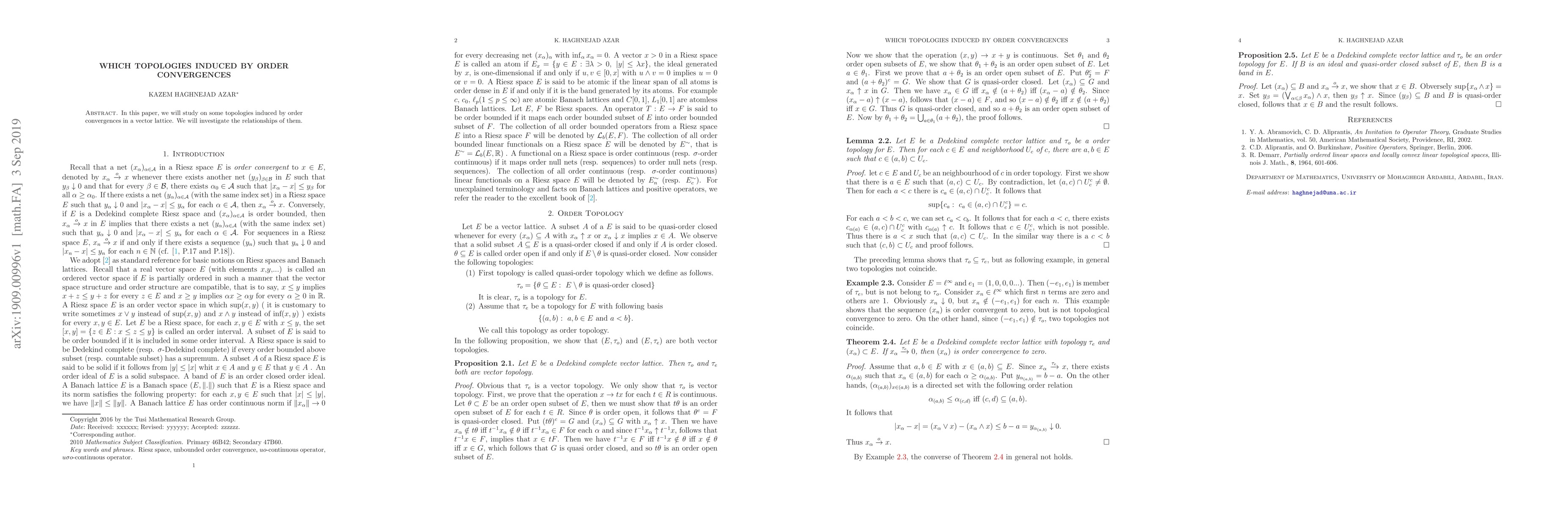 Summary: This paper explores various topologies generated by order convergences within a vector lattice, focusing on their interrelations and properties.