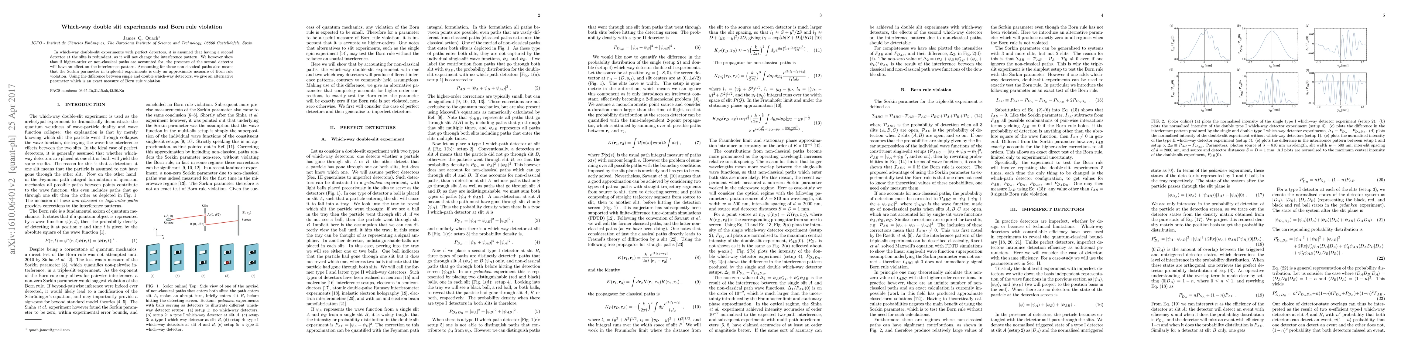This paper demonstrates that the presence of a second detector at the slits in which-way double-slit experiments affects the interference pattern due to higher-order or non-classical paths, challenging the conventional view. It proposes an alternative parameter for measuring Born rule violation, providing a more precise measure than the Sorkin parameter.