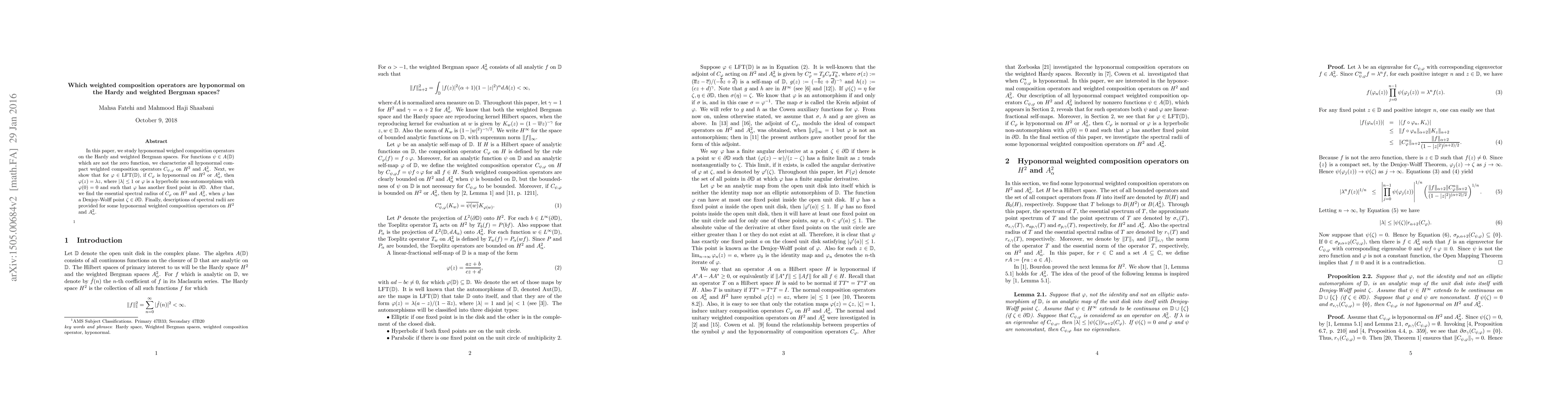 This paper characterizes hyponormal compact weighted composition operators on Hardy and weighted Bergman spaces and determines specific forms for hyponormal operators on these spaces. It also computes the essential spectral radius and spectral radii for certain conditions on the composition functions.
