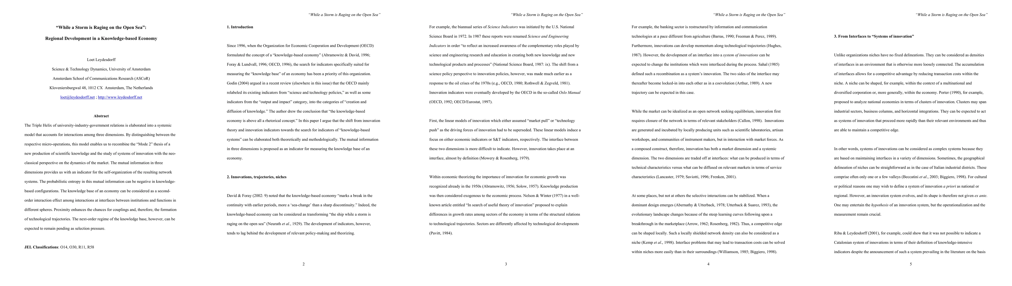 The Triple Helix of university-industry-government relations is elaborated into a systemic model that accounts for interactions among three dimensions. By distinguishing between the respective micro-operations, this model enables us to recombine the "Mode 2" thesis of a new production of scientific knowledge and the study of systems of innovation with the neo-classical perspective on the dynamics of the market. The mutual information in three dimensions provides us with an indicator for the self-organization of the resulting network systems. The probabilistic entropy in this mutual information can be negative in knowledge-based configurations. The knowledge base of an economy can be considered as a second-order interaction effect among interactions at interfaces between institutions and functions in different spheres. Proximity enhances the chances for couplings and, therefore, the formation of technological trajectories. The next-order regime of the knowledge base, however, can be expected to remain pending as selection pressure.