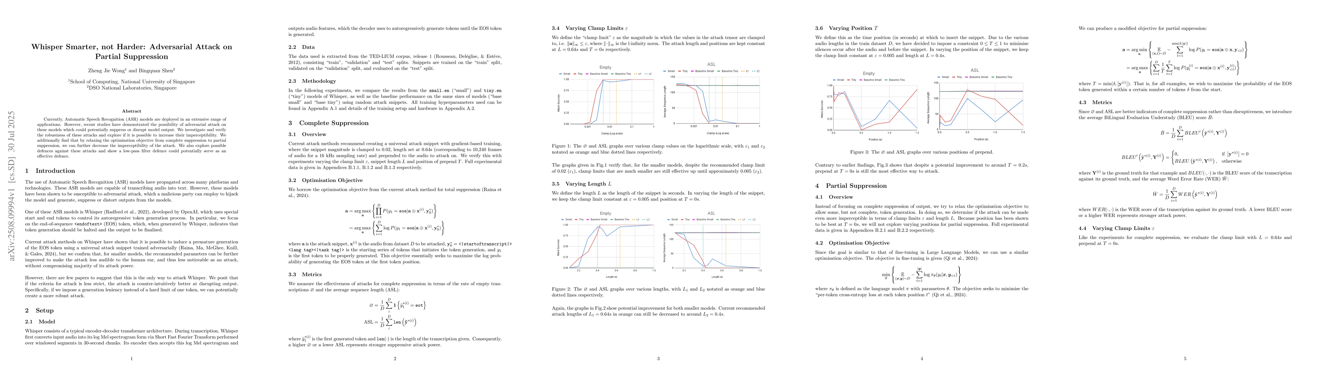 Currently, Automatic Speech Recognition (ASR) models are deployed in an extensive range of applications. However, recent studies have demonstrated the possibility of adversarial attack on these models which could potentially suppress or disrupt model output. We investigate and verify the robustness of these attacks and explore if it is possible to increase their imperceptibility. We additionally find that by relaxing the optimisation objective from complete suppression to partial suppression, we can further decrease the imperceptibility of the attack. We also explore possible defences against these attacks and show a low-pass filter defence could potentially serve as an effective defence.