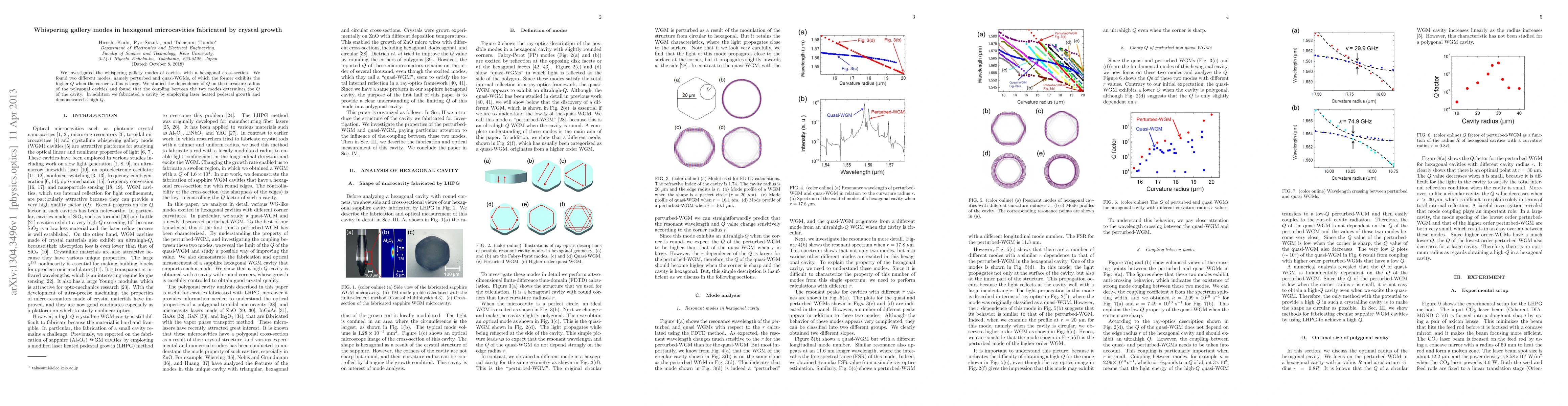 We investigated the whispering gallery modes of cavities with a hexagonal cross-section. We found two different modes, namely perturbed and quasi-WGMs, of which the former exhibits the higher Q when the corner radius is large. We studied the dependence of Q on the curvature radius of the polygonal cavities and found that the coupling between the two modes determines the Q of the cavity. In addition we fabricated a cavity by employing laser heated pedestal growth and demonstrated a high Q.