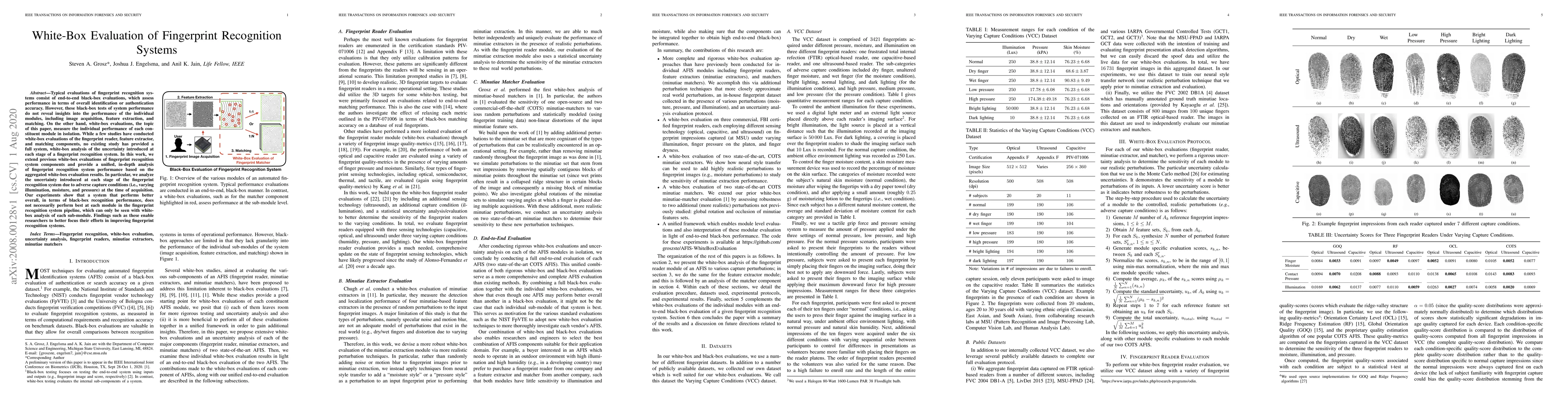 This paper conducts a white-box evaluation of fingerprint recognition systems to assess the performance of individual modules, revealing insights not provided by black-box evaluations. It finds that overall system performance does not correlate with individual module performance, highlighting the importance of white-box analysis for system improvement.